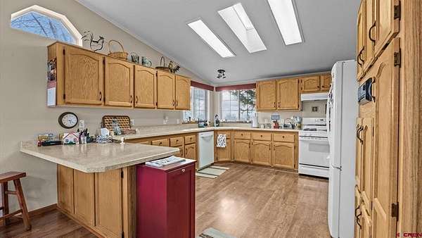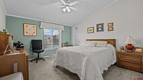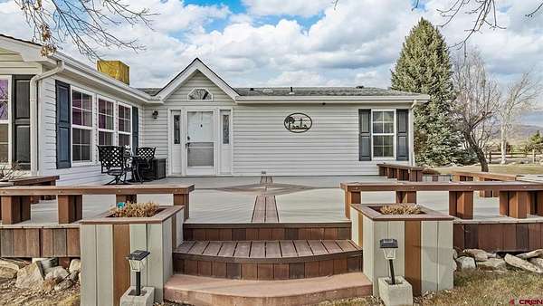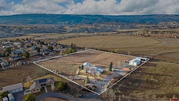 Christi Schmidt, Colorado Select Real Estate, C: 970-201-8394, christi.csre@gmail.com, www.crenmls.com: Discover this immaculate & beautifully maintained 5.18+- acre property featuring a spacious 2,072 sq. ft. tri-modular home designed for comfortable country living. The home sits on a cul-de-sac at the end of a quiet, private lane. The 3-bedroom, 2-bath split floor plan offers an open and airy layout with generously sized bedrooms and closets. Both bathrooms have been recently remodeled, and the home includes newer insulated windows with shutters, updated carpet (2022), and a new roof installed in 2024. The large country-style kitchen opens to a generous dining area and living space, anchored by a cozy wood-burning fireplace--perfect for gatherings and everyday living. Climate comfort is provided by a natural gas furnace, central air conditioning, a swamp cooler, and natural gas water heater and range. Enjoy outdoor living on the front Trex deck, ideal for entertaining and taking in sweeping views of the West Elk Mountains and San Juan Mountains, while the covered back patio captures expansive views of Grand Mesa. The property is nicely landscaped with mature trees and shrubs, automatic sprinklers, and offers excellent privacy. Improvements include a detached 3-car garage with attic storage and attached dog run, a 40' x 50' insulated metal shop with 12' RV doors, workshop space & mezzanine level for extra storage, and a 30' x 40' horse/ag barn with tack room. Approximately 3.5 acres are fenced pasture or hay ground. Irrigation for both yard and pasture is provided through the HOA (nominal annual fee) and is shared with neighboring properties, including 660 shares of Orchard Ranch Ditch and 35 shares of Weir/Johnson Reservoir. A well-equipped, move-in-ready acreage offering space, views, and exceptional infrastructure for rural living.