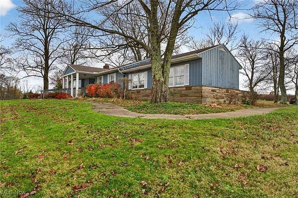 Welcome home to this sprawling 5 acre ranch in Chardon, Hambden Twp. This multigenerational home offers a convenient in law suite layout, totaling 6 bedrooms and 3 full baths. A large 4 bay outbuilding/garage offers much potential for car enthusiasts, landscaping equipment, workshop and more. A wood ramp leads to a new front door. Living room is large with an original 50's Stone wall fireplace surround, bay window, and neutral colors. Bright sun room and dining area lead to the kitchen. The main living area has 4 bedrooms and 2 updated full baths. The in law area has a living room, a kitchenette, 2 bedrooms, and a full bath with walk in shower. Also has its own entrance, in addition to access to the main living area. A full basement houses the laundry area, much storage and room for recreation or crafts. Outside is a nice patio overlooking the expansive backyard. A shed, and play set stay. Recent mechanical updates Furnace 2024, Driveway 2021, A/C 2020, Septic pump, Pressure Tank. Enjoy the charm of Historic Chardon Square with its Gazebo, shops, restaurants, and cafes. Many events held at the square including Geauga County Maple Festival. Hike or bike the 20+ mile paved Maple Highlands Trail. Located about 35miles east of Cleveland. Rural living convenient location. Opportunity is knocking, are you ready to answer?