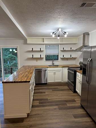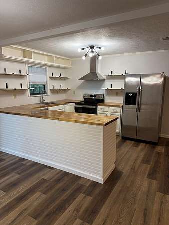 Beautifully Updated Home nestled on 1.77 private, tree-shaded acres in the highly sought-after Central Heights school district. Offering the perfect blend of modern updates and serene country living, this property provides ample space to grow, relax, and enjoy the outdoors. Inside, you'll find numerous updates including stylish kitchen cabinets, solid-surface countertops, and open decorative shelving. The kitchen is equipped with a smooth-top range, dishwasher, and refrigerator all included for your convenience. Durable luxury vinyl plank flooring has been installed throughout, ensuring years of worry-free living. The fully renovated bathroom was designed with both comfort and functionality in mind. Step outside to enjoy a spacious covered front porch--ideal for relaxing afternoons spent sipping your favorite beverage and watching local wildlife.
