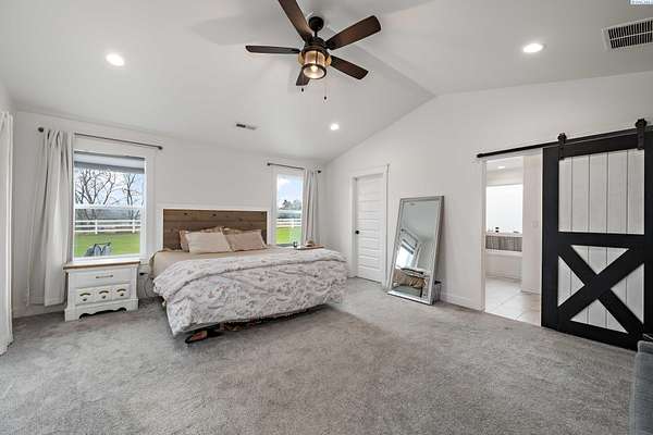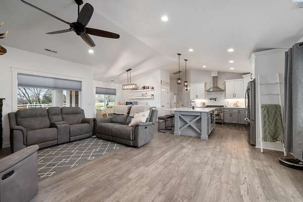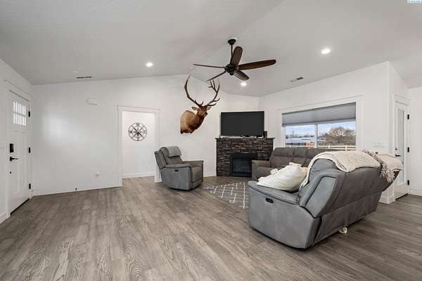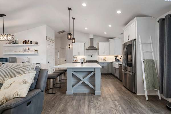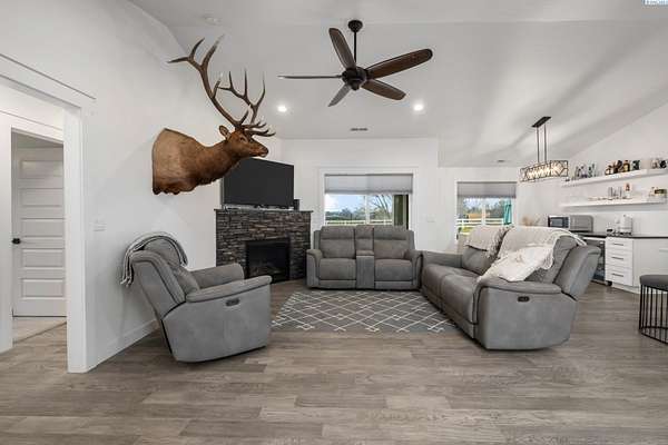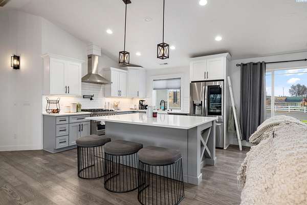 MLS# 289264 Welcome to your stunning Kennewick retreat on a generous 1.81-acre lot! This 2021, custom built home offers modern elegance and a perfect blend of indoor and outdoor living. Situated in a peaceful and quiet area with a tight-knit community, this home offers both privacy and convenience, and walking distance to the fairgrounds for added fun! This property is perfectly suited for those who love a touch of country freedom. With the land providing a total of 78,844 square feet, it is perfectly set up for horses/livestock, or even a future pool!You will love the bright, open-concept living area with vaulted ceilings and a cozy fireplace, perfect for relaxing or entertaining. The 1,845 square foot home features four bedrooms, two baths, and a luxurious primary suite with a walk-in closet, its own bathroom, and a sliding glass door opening onto the backyards covered patio. From the patio, you can enjoy lovely views of the surrounding landscape. With a 1,100 square foot garage that fits up to four cars and RV parking, this home blends comfort, convenience and a truly inviting lifestyle both indoors and out. Don't miss out on this extremely rare and unique home - it won't last long! Set up your private showing today.