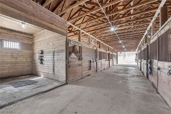 Unlock a premier income-producing lifestyle where professional equestrian infrastructure meets the luxury of lake-community lifestyle. This 20-acre estate features an 18-stall barn with a proven boarding history of $550/horse per month. The facility is equipped with skylights, a hot water wash rack, dual tack rooms, a 60x100 indoor arena, and a 100x120 outdoor arena, all supported by 8 electric-fenced pastures. Logistics are seamless: a separate barn driveway ensures boarder traffic never interrupts your home's privacy. A critical distinction: while the home enjoys Roaming Shores HOA amenities (lake, pools, clubhouse), the barn sits outside HOA jurisdiction, fully permitting horses and livestock. Financial efficiency is unmatched with public utilities, free gas rights, and annual royalty payments. Recent $100k improvements include new roofs (2022) on both the barn and residence.