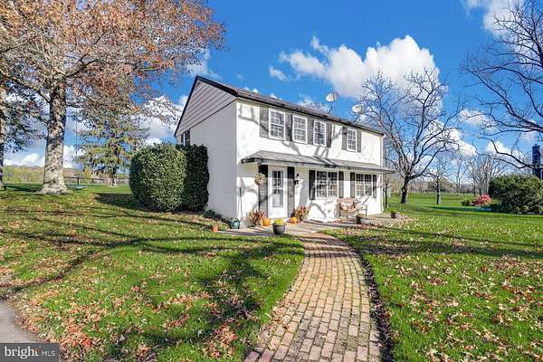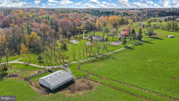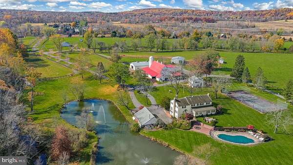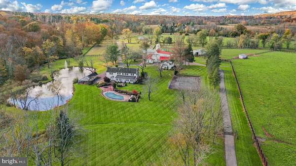 An extraordinary country estate! One of the premier properties of Elk Creek Farm, this magnificent 120+ acre retreat features two homes, barns and stables, a tranquil pond, rolling pastures, and breathtaking countryside views. Ideally located just minutes from historic New Hope and Doylestown-with their galleries, shops, and restaurants-and offering an easy commute to Philadelphia or New York, this estate combines privacy, beauty, and convenience. The casually elegant main house offers a gracious floor plan designed for both comfortable living and impressive entertaining. Four fireplaces provide warmth throughout, while a stunning four-season room spans the back of the home, showcasing panoramic vistas. A richly paneled den/office and a family room with Juliet balcony overlook the pond. Outdoor living shines with a bluestone patio featuring a built-in grill, meandering walkways, a lighted tennis court, and a heated in-ground pool. A charming circa 1890 guest home offers three bedrooms and delightful period details-perfect for guests or extended family. The property is a true turnkey farm, complete with a beautifully restored bank barn featuring stalls, hay storage, feed room, and equipment garages. An eight-stall horse barn-originally designed for racehorses-includes an air-conditioned office, powder room, and wash stall. Five additional Morton buildings, multiple run-in sheds, acres of fenced pastures with heated waters, and paved internal roadways complete this exceptional offering. Private, picturesque, and grand-this is a rare opportunity to own one of Bucks County's most stunning country estates.
