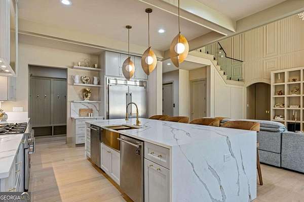 Welcome to 1315 Sandy Creek Road, A Private Gated Estate in the Prestigious River Oaks Community Nestled on nearly 3 breathtaking acres behind private gates, this European-style brick-and-stone masterpiece offers over 7,100 square feet of unmatched luxury living, with 6 bedrooms and 4.5 baths, designed for those who demand the absolute best. Enter through a stunning pivot glass door into a dramatic two-story foyer where soaring 25-foot ceilings set the tone for the grandeur that awaits. A wall of windows immediately draws your gaze to your breathtaking private gardens and outdoor oasis beyond. The main-level primary suite is the ultimate sanctuary. Soaring ceilings create an airy, spa-like retreat the moment you walk in. Unwind by the fireplace right inside your master bathroom, sink into the luxurious soaking tub, and feel the warmth of heated marble floors beneath your feet the perfect setting for those warm, cozy evenings you deserve. For the ultimate in convenience, a luxury fitted elevator glides you effortlessly between floors. Now let's talk about the kitchen, because this one is in a league of its own. A professional-grade 8-burner stove commands the space like a statement piece, ready for everything from weeknight dinners to lavish dinner parties. An oversized double refrigerator keeps everything fresh and within reach, while the massive custom island with a designer hood and a complete second kitchen with extra appliances and storage make this the kind of kitchen that serious home chefs and entertainers dream about. Your fur babies are family too, and this home treats them that way. A dedicated pet washroom serves as your very own doggy spa, keeping your four-legged family members pampered and clean. Two full laundry rooms mean laundry day is never an inconvenience again, one for everyday living, one for added ease across the home. A four-car garage, including a heated bay perfect as an optional home gym, gives you space, storage, and flexibility that matches the scale of this incredible estate. Step outside to a dramatic outdoor kitchen built for grand entertaining, where you can cook, dine, and host under the open sky while overlooking your beautifully manicured private gardens. And the lifestyle extends beyond the walls, enjoy exclusive access to the community's swim and tennis courts, bringing resort-style amenities right to your doorstep. Twenty minutes from the airport, five minutes from Trilith Studios Fayetteville County schools 1315 Sandy Creek Road, Tyrone, Georgia. Listed at $2,550, 000. Schedule your private showing.
