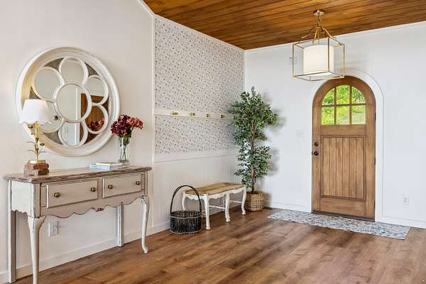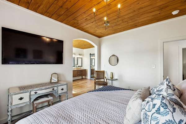 - Cathedral Ceiling(s), Ceiling Fan(s), Chandelier, Crown Molding, Entrance Foyer, Granite Counters, High Ceilings, Natural Woodwork, Open Floorplan, Soaking Tub, Vaulted Ceiling(s)