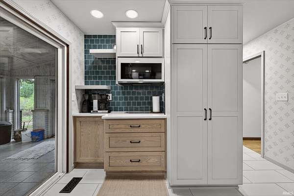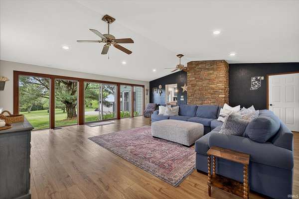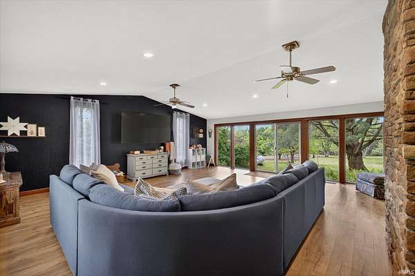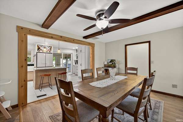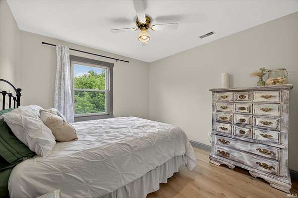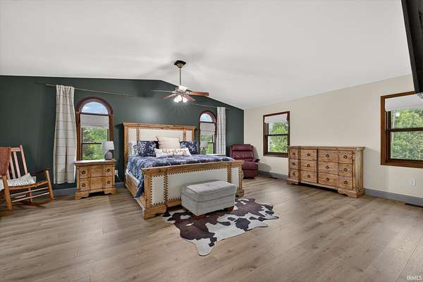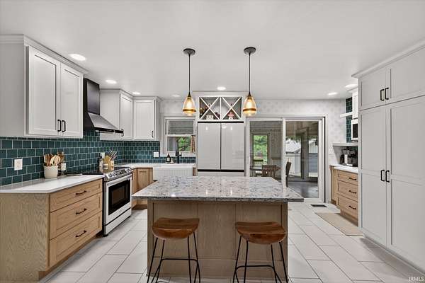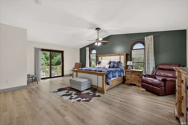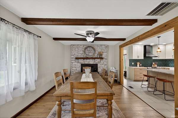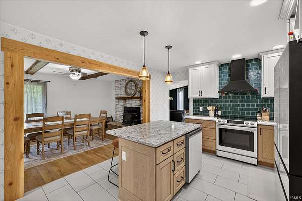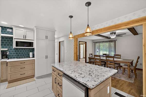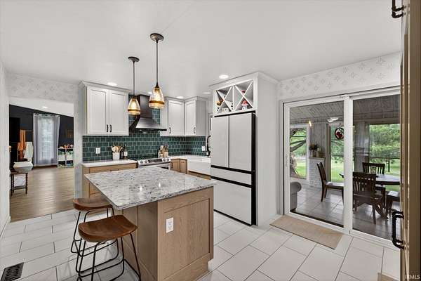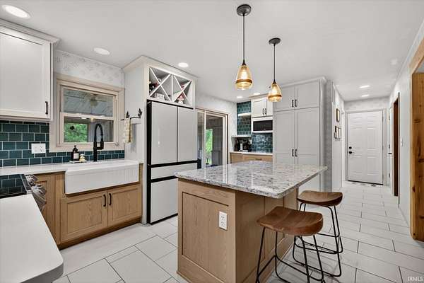 Welcome home to 1315 W Dittemore Rd in Bloomington Indiana. This home has had a tremendous remodel and is ready for new owners. Outside you'll see new roof, gutters, exterior paint, shutters, balcony, garage door and barn doors. Inside you'll find a custom designed spacious kitchen featuring an expansive central island with stone countertops, white cabinetry, wood-finish base cabinets, a distinctive teal subway tile backsplash, and stainless steel appliances. The house has been completely painted throughout, remodeled laundry and bath, new floors throughout and more. The floorplan offers a kitchen open to a dining area with fireplace, a living room with vaulted ceilings and views of trees and backyard, a three seasons room and a laundry and full bath on the main level. Upstairs you'll find a primary bedroom large enough for sitting area or temporary nursery, with a closet with amazing storage, and a private balcony overlooking the backyard. Also on the upper level you'll find 3 additional bedrooms and a full bath. The house offers an attached 2 car garage. For those wanting a hobby garage, there is a 1200 sq.ft. polebarn building with efficiency apartment with kitchen and full bath. The backyard is flat and sunny, perfect for a garden or can be fenced for pets. Great northside location that is only 15 minutes to downtown Bloomington and convenient to interstate.