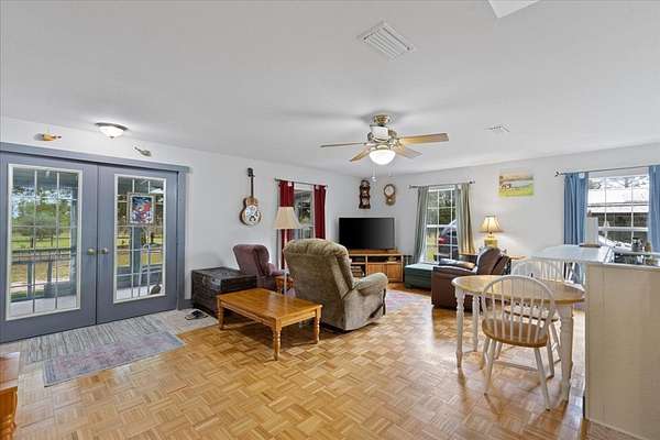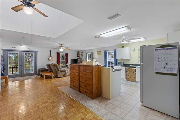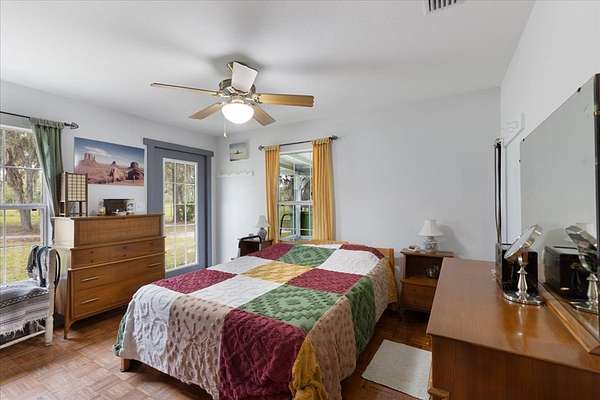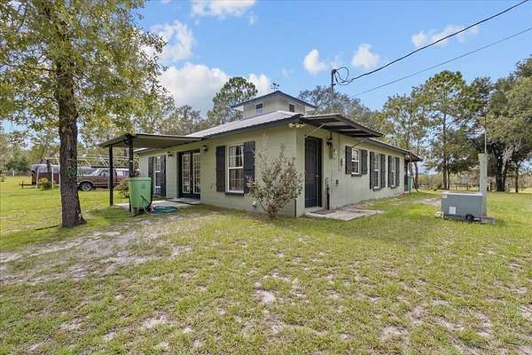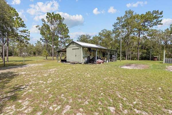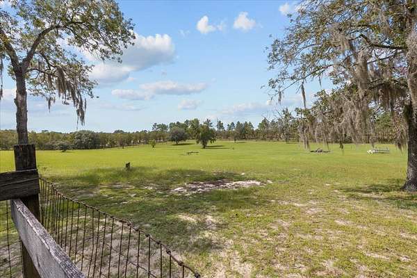 Wonderful 2 bedroom/1 bath custom home located on 9.18 acres in gorgeous Archer Florida. This property is a dream, beautiful rolling hills , open pasture , completely fenced and cross fenced perfect for the horses or farm animals. As you drive up to the property you see the cozy home sitting perfectly , a nice drive and gorgeous view across the pasture. As you enter the home you will fall in love with its uniqueness and charm . Original parquet flooring throughout in excellent condition , a nice foyer opening up the bright open floor plan with the open kitchen and open living room and exit doors onto the back screened porch. Bedrooms on spacious and share a bathroom with a combo tub/shower. Laundry room offers extra space for storage and an exit door as well. In the center of the home you get to enjoy natural light with the custom ceiling detail. Outside you have wide open space to put your own personal touch on it! Cross Fencing around the home perfect for pets . A nice outbuilding that can be used as a workshop and the lean too to park the mower or tractor. The property is surrounded by Goethe State Park ensuring ultimate privacy and seclusion! This home is a MUST SEE , accepting ALL loans , call today for YOUR tour!