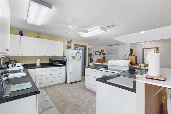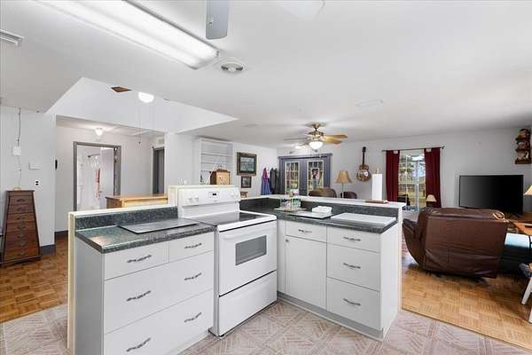 - Ceiling Fans, Electric Range, Kitchen/Dining Combo, Laminate Counter, Laundry/Utility Room, Living Room, Pantry, Wood Cabinets, w/ Hookups