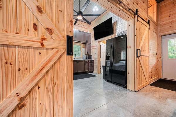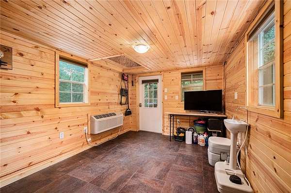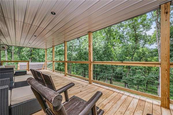 This is not your Grandfather's cattle pasture! Finally, a mature forest that rarely comes available and it's LOCATED ONLY 15 MILES FROM LIBERTY! PRIME GATED HUNTING LOCATION on 55 acres w/ NEWLY COMPLETED HUNTING LODGE and GUEST CABIN w/quick access to Hwy 10!! This HUNTING PARADISE has provided many TROPHY DEER, small game, bobcats, coyotes, TURKEYS and more! Property features MANY GORGEOUS ROCK BLUFFS, wet weather CREEKS, wide riding/hiking TRAILS w/professionally placed culverts along with Red Oak, White Oak, Walnut, Ash, Cedar & Cherry trees. The lodge features 1000 sq ft living space, full kitchen and bath & 500 sq ft COVERED DECK to take in the views! Pacific Energy Industrial Glass Door WOOD STOVE! Granite counter tops, new HVAC, TANKLESS H2O HEATER, 16x12 insulated garage door, Yale deadbolt locks, upgraded 26G steel siding & roof and leaf guard screens on guttering. Don't miss the loft area! Guest cabin w/HVAC & loft space. 24/7 monitored security systemw/ motion lights for SECURITY on both buildings. There is also an 8Wx10Hx40L SHIPPING CONTAINER with electricity for storage. The north portion of the property has it's own water meter. Be sure to explore the extensive trails in order to appreciate its beautiful and diverse topography. This UNIQUE property won't last long! HURRY!
