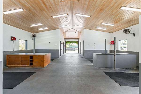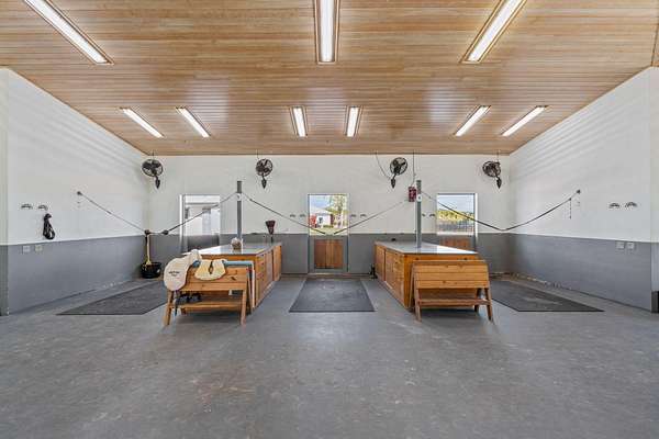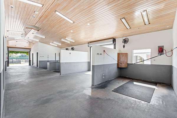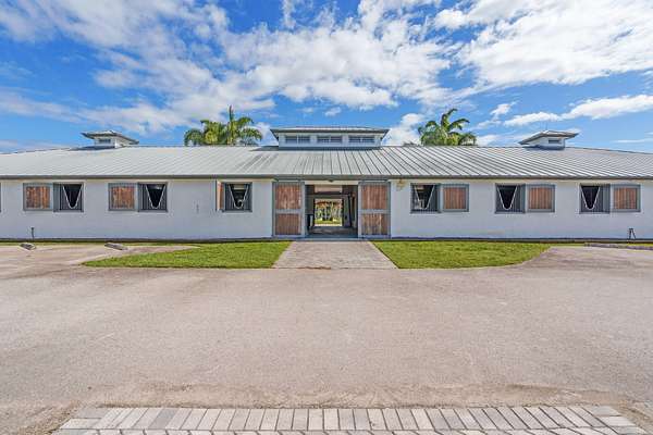 SUMMER RENTAL ONLY. Elevate Your Summer. Discover Your Perfect Equestrian Retreat. Conveniently situated on Southfield Road, offering a short hack to show grounds. Includes an oversized riding ring with a 30m x 70m covered dressage ring, ensuring optimal training conditions rain or shine. This beautiful property also features a hot walker, round pen, and spacious outbuildings with indoor/outdoor wash stalls, groom stalls. kitchen, tack room, feed room, hay storage and bathroom. Up to 38 stalls available. Boasts superb footing with new fibers and concussion mats, prioritizing horse comfort and performance. Equipped with hurricane proof with storm doors and generator on-site for added safety during extreme weather conditions. Enjoy the convenience of a Sonos sound system in the ring, outbuilding, and barn for a pleasant atmosphere. As well as an ample parking space available for trailers.