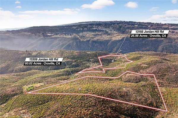 This partially sloped Concow property boasts 26.98 acres of stunning panoramic views and tremendous privacy. A seasonal creek runs through the property as well. The neighboring parcel (13308 Jordan Hill Rd) is also for sale with one other property sandwiched between them. Seller will consider selling both properties together, though buyer should be made aware that there is another lot between them and the two lots do not run perfectly congruent to one another. Be sure to watch the video tour to understand the two properties better! This lot could make for a stunning one-of-a-kind home site and is an excellent horse property with trails throughout!