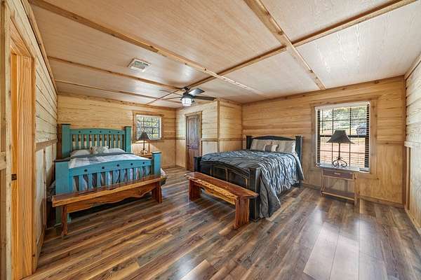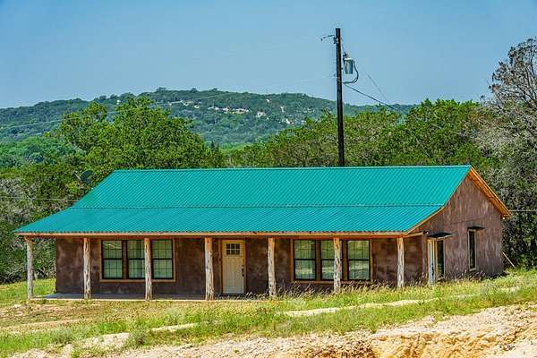 Wildlife Exempt! Discover the serene charm of this captivating Santa Fe style cabin, gracefully positioned on 5 acres This distinctive retreat embodies the rustic allure of Santa Fe & Hill Country architecture offering a unique opportunity to immerse yourself in tranquility. The adobe-style exterior exudes timeless character & cozy warmth. Step inside to an airy open-concept w/natural light & rustic style kitchen. Two generous sized bedrooms, each w/its own en-suite bathroom, provide comfort and privacy. Beyond its intrinsic charm, this property presents an ideal primary residence. With electric infrastructure already in place for additional construction, the potential for expansion is at your fingertips. Conveniently situated near local landmarks such as the Historic Hunt Store, Bridget's Basket, and just minutes away from Criders Rodeo and Dance Hall, this exceptional property epitomizes the coveted allure of Hunt, TX. Don't miss this rare chance to own a piece of paradise encompassing 5 acres of serene Hill Country landscape.