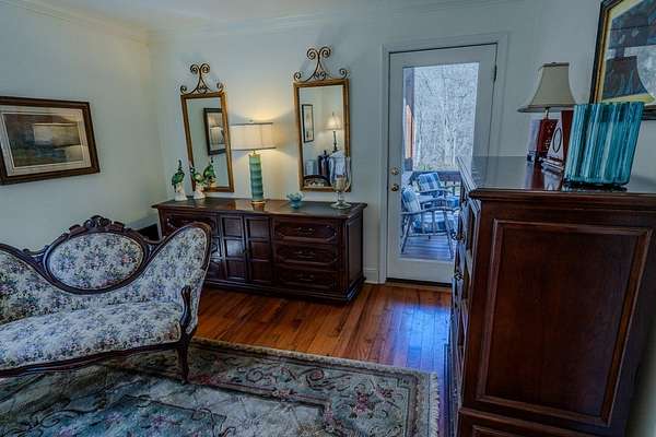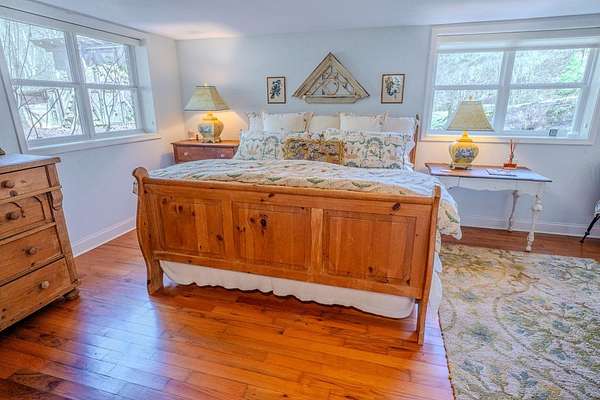 Discover timeless Carolina charm in this exquisite 3-bedroom, 4.5-bath ranch nestled on over 32 acres in the serene mountain valley town of Andrews, NC. Boasting gleaming hardwood floors throughout, elegant formal living and dining areas, a gourmet chef's kitchen perfect for culinary masterpieces, a versatile mother-in-law suite for extended family or guests, a relaxing screen porch overlooking a serene pond, and breathtaking mountain views with direct frontage on the stocked trout waters of Junaluska Creek, this property offers unparalleled privacy and natural beauty. Enjoy the purity of gravity-fed artesian well water while immersing yourself in the great outdoors—adventure awaits just minutes away with thrilling Nantahala Gorge rafting, world-class fly fishing on the Little Nantahala River, and pristine mountain lakes for boating and relaxation. Your ultimate retreat in the heart of Western North Carolina!