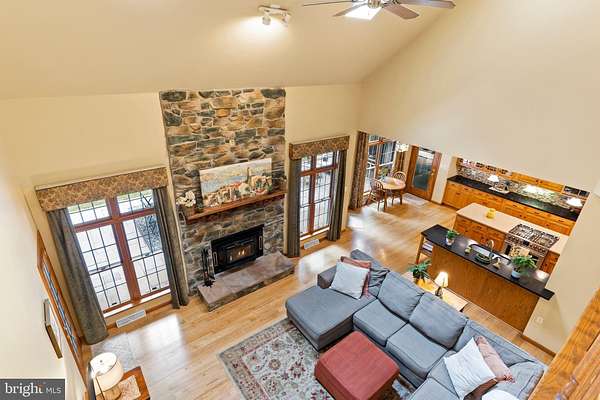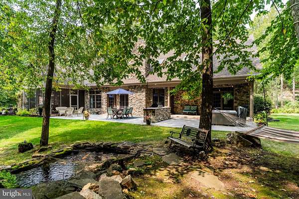 A soft stream from the mountain meanders through the front of this beautiful wooded property of 7 .5 acres, affectionately named Cold Spring Oaks. Limestone boulders and rocks create an amazing natural backdrop! Wildlife peek from the woods and become your closest , very quiet neighbors. What a custom built home, 2002, that captures the essence of nature all around you ! Quality and tastefully selected features- 4-5 bedrooms, 2.5 baths, 3 car garage with incredible cabinetry, 3 fireplaces, office, master suite on main level and so much more! The photos will show you : outdoor grill station, hot tub, screened in porch, koi pond, patio, lots of storage places , open floor plan of great room and beautiful oak kitchen with quartz counters, oodles of cabinets, pantry, eat in table . Formal dining room, formal living room , laundry room, walk- in utility room with sink and space for a second refrigerator or freezer and half bath as you enter from the garage. LARGE room above the garage has greats lighting with wet bar so could be another owners suite or craft room or whatever. I guarantee you will find a peace come over you at Cold Spring Oaks. Your respite awaits! Five minutes to Scotland I-81 exit.