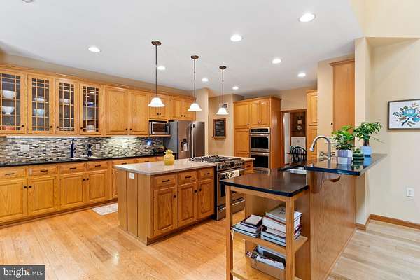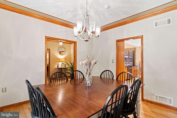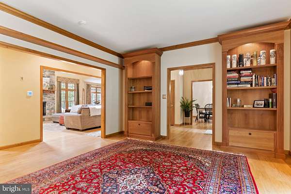 - Attic, Breakfast Area, Built-Ins, Carpet, Ceiling Fan(s), Combination Kitchen/Living, Crown Moldings, Entry Level Bedroom, Formal/Separate Dining Room, Island Kitchen, Pantry, Skylight(s), Soaking Tub Bathroom, Table Space Kitchen, Upgraded Countertops, Wood Floors