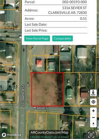 Zoned C-3. This 0.51 acre commercial lot is cleared and ready for your new business venture. There is a newer Love's truck stop on this exit and proximity is close to Main street, The Clarksville School District, Marvin Vinson Multipurpose building, medical clinics, and a grocery store. Corner lot of Crawford and Sevier Street with west side fronting Crawford St. The survey is from a previous seller and is not certified to this seller. For display purposes only. New survey and buyer due diligence recommended.