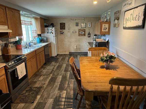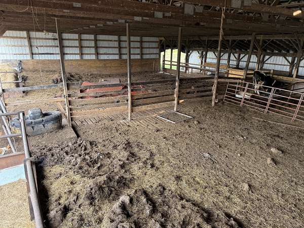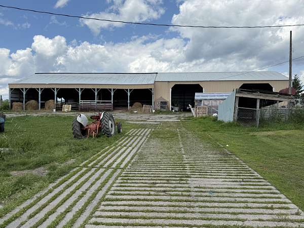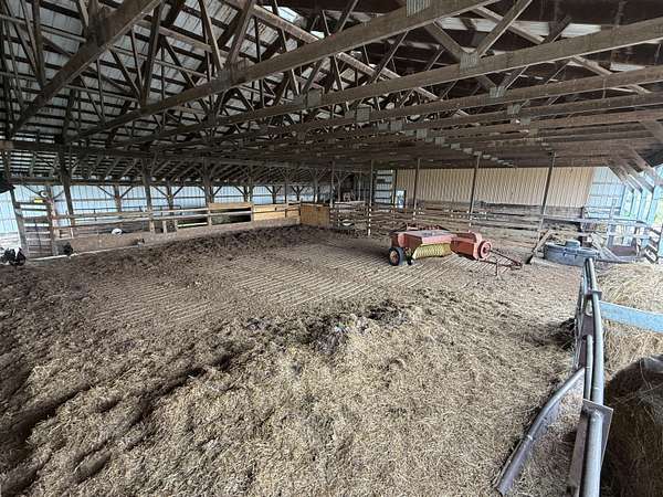 HOME AND WORKING FARM OPERATION with a manure containment facility in the whole back barn and a 100-gallon MiraFount livestock waterer. The hay barn holds up to 570 4x5 round bales (barn is 49 x 78). Pole barn comfortably holds 120 cattle including cement bunk feeders inside and outside the barn (size 40 x 77 and 40 x 63.6 approx). Comes with 78 acres mostly enrolled in the GRP. The 2 (once 3) bedroom home includes newer kitchen appliances, washer/dryer and an open floor plan between the kitchen and living room. There is a large bathroom and 1/2 bath in the laundry room. Septic was pumped in 2021. Options for heat include oil, wood and geothermal/heat pump. 400 Amp electric service outside was done in 2020. Greenhouse and a couple storage barns as well. Appointment required.