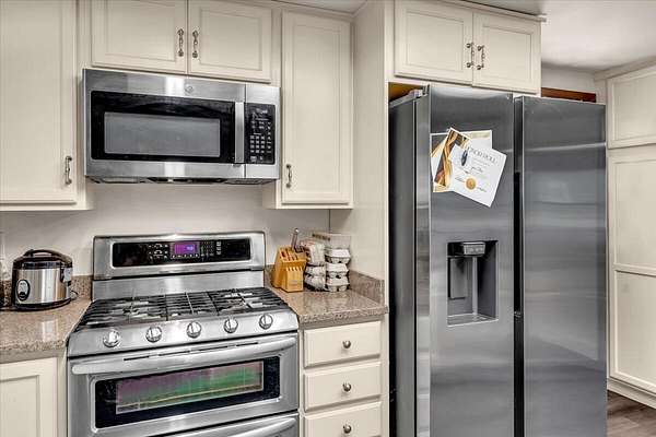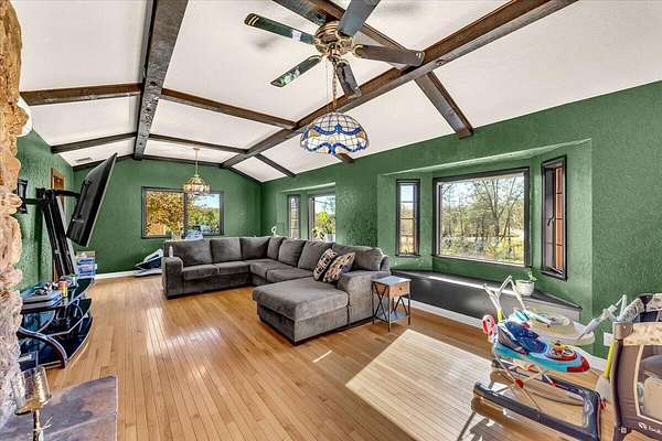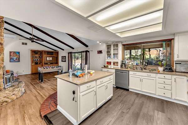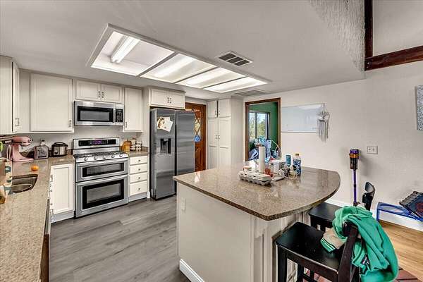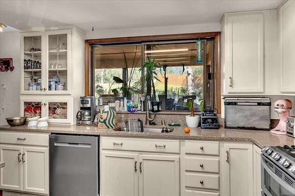 Ranch style home nestled on 2.62 acres in North Redding. Inside you'll find an updated kitchen featuring granite countertops, stainless steel appliances, a large center island and plenty of cabinet space. The spacious primary suite offers a walk in closet and relaxing atmosphere, while the open concept living area showcases vaulted beamed ceilings that add warmth and character. Step outside and enjoy your own private oasis complete with inground gunite pool and spa, ideal for sunny days and starry evenings. The circular driveway adds convenience and curb appeal with plenty of room for guests or extra parking. The propery combines country living and modern comforts, ready for you to move in and make it your own!