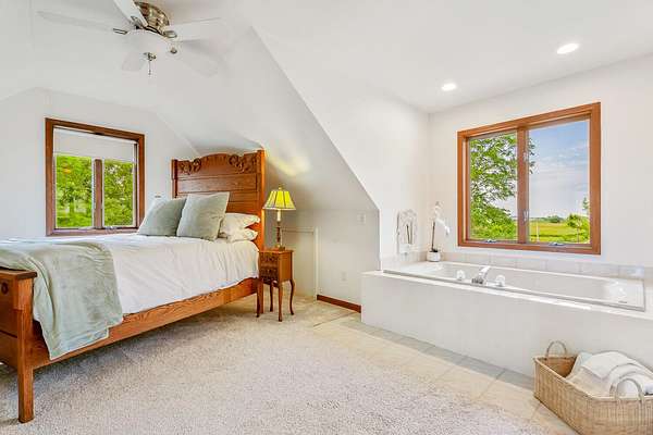 Welcome to this charming 3-story, 4-bedroom, 2.5-bath estate, tucked away on a long private drive, surrounded by mature trees, colorful flowers, peaceful countryside views, and open skies. The property feels like your own private retreat while still being just a short drive to town. Step inside to find a spacious living room with hardwood floors, a beautiful wood burning fireplace, and oversized windows that bring in natural light and views of the grounds. The updated kitchen features classic subway tile, modern finishes, and a dining area that opens through sliding glass doors to the back patio--a perfect spot for summer cookouts or quiet evenings outdoors. Upstairs, the 2nd floor features 3 additional bedrooms, a bonus flex space that could be a 5th bedroom, an updated bathroom with double vanity plus a balcony to take in the views. The entire 3rd floor is dedicated to the primary suite--complete with a jacuzzi tub overlooking the sunset skies. The partially finished basement adds a second wood-burning fireplace, extra storage, and bonus space for hobbies or gatherings. Outside, this property truly shines. Enjoy mornings on the covered front porch with a swing, afternoons by the pond, and evenings under the stars. For hobbyists or horse enthusiasts, the grounds feature an electric-fenced pasture, a horse lean-to, a large heated pole barn, a second lean-to, and a heated attached garage--providing endless options for storage, equipment, or livestock. Conveniently located near major highways--including US-41, US-231, and with quick access to the Illinois border-this property offers both privacy and connectivity. Don't miss your chance to own this gorgeous country estate-schedule your showing today!