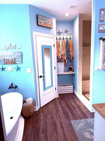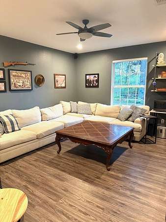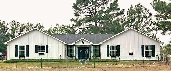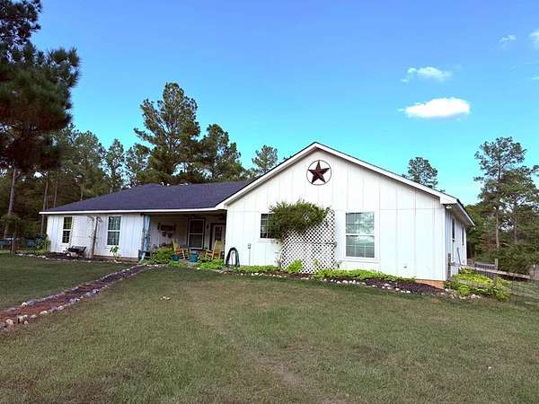 Welcome to your private dream home in the Beulah community just outside of Lufkin, Texas! This custom-built home offers nearly 2,000 sq. ft. of living space and was completed in 2020. Nestled at the back of a 9-acre parcel, it features its own pond & a long private driveway-completely hidden from FM 58--so you can enjoy peaceful East Texas sunsets in total seclusion. Inside, you'll find 4 spacious bedrooms, 2 bathrooms, and a thoughtfully designed kitchen with a farmhouse sink, gas stovetop, double wall ovens, and a tankless gas water heater. The walk-in pantry provides ample storage, while spray foam insulation keeps the home energy-efficient. The primary suite boasts a freestanding tub, and the mudroom includes a built-in doggy-shower for your furry friends. A custom breezeway adds both charm & convenience. Perfect for those with animals as approximately 5 acres are cross fenced with a walk-in horse barn, goat house, storage shed, greenhouse, & a fenced garden area with 8 raised beds.