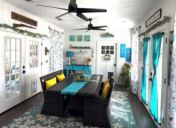 - Barn, Covered Front Porch, Fence, Fenced Yard, Greenhouse/Garden House, Outbuilding On Slab, Portable Outbuilding, Stable(s), Storage Shed, Wood Shutters