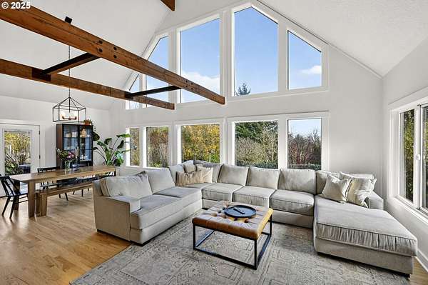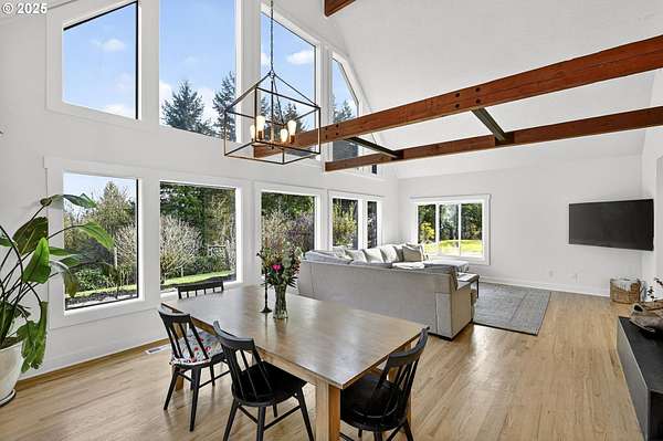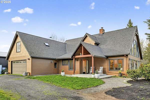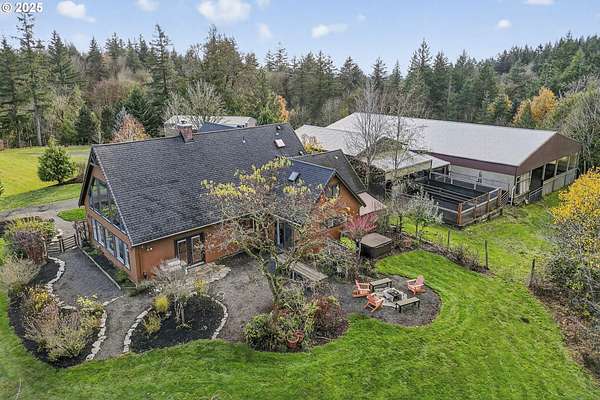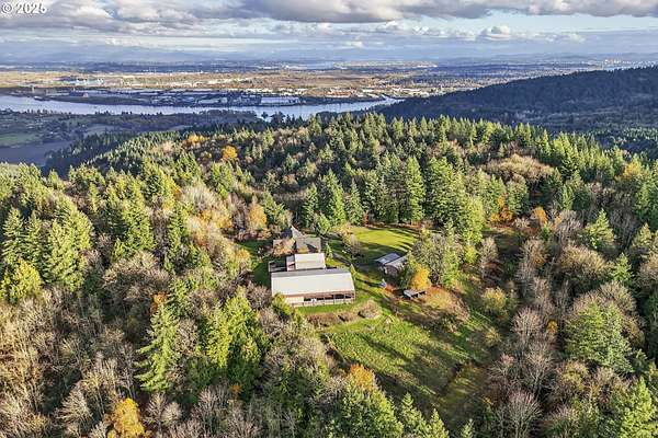 A rare equestrian retreat on nearly 13 acres-less than 25 minutes to downtown Portland and just moments from Forest Park's northernmost entrance. This property offers an exceptional setting for horse lovers, featuring a beautiful 5,750 sq. ft. covered arena, five attached stalls, and a serene meadow that completes the picturesque landscape. The fully renovated main residence is nothing short of impressive. Soaring vaulted ceilings and floor-to-ceiling windows fill the home with natural light, while the brand-new, high-end kitchen showcases the current owners' attention to quality and detail. Enjoy true main-level living with a stunning primary suite, plus all essential daily comforts on the first floor. Upstairs you'll find an additional bedroom, spacious family/bonus areas, and a versatile loft office. A detached living space-complete with its own kitchen and full bath-offers ideal accommodations for guests, multi-generational living, or income potential. The property also includes a huge shop, expansive covered areas, and RV hookups. Offering privacy and seclusion at its finest while remaining close to all the conveniences of the city, this unique property blends natural beauty with modern comfort in a way that's rarely available.