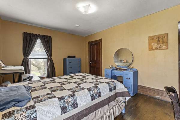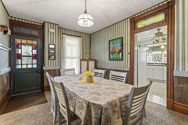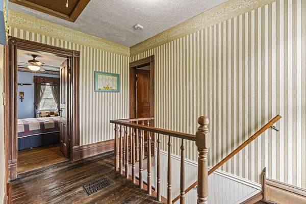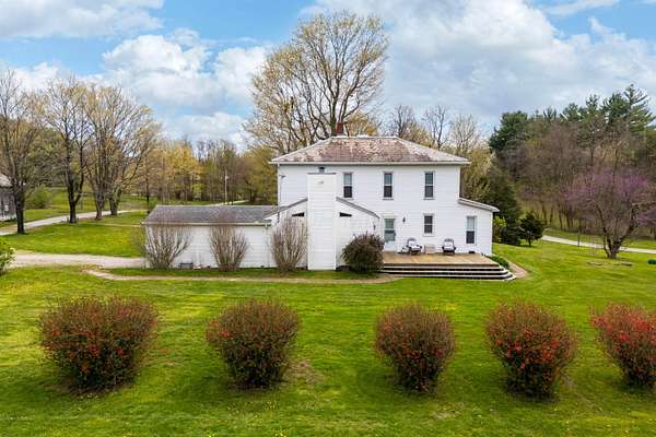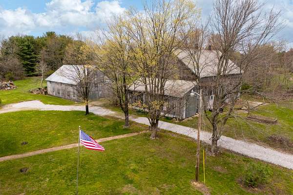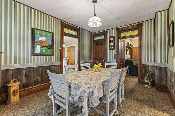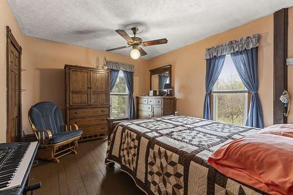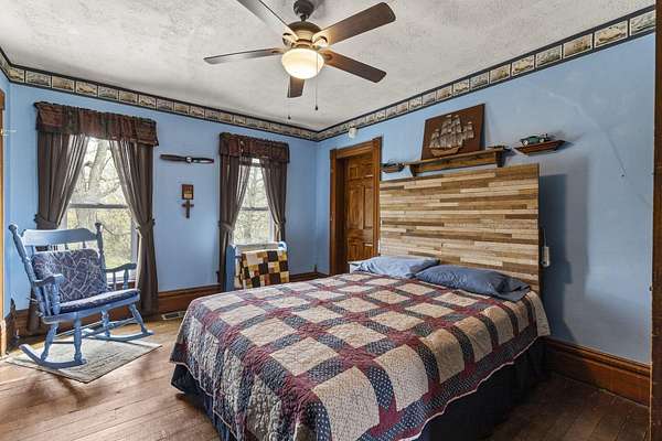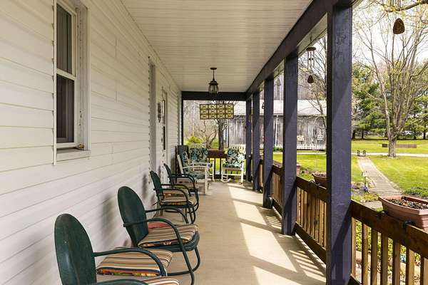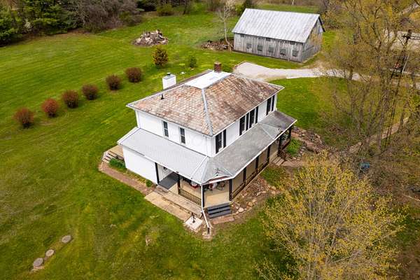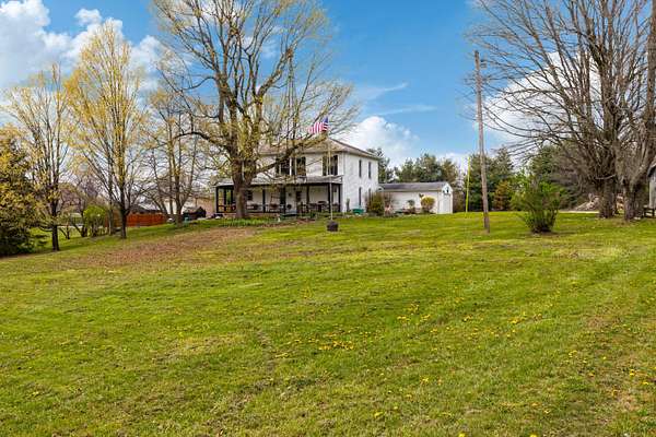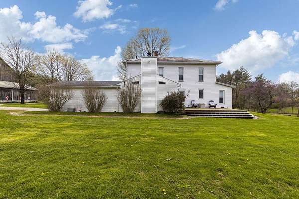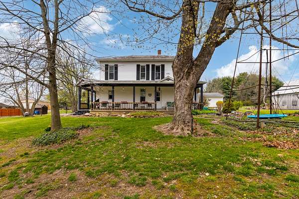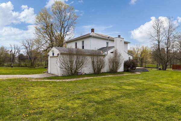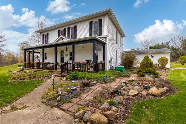 Imagine sipping your morning coffee while watching the sunrise from the comfort of your front covered porch. This beautiful two-story home offers the perfect setting for starting your day with tranquility and peace. This 2,666 sq. ft. home boasts four bedrooms and two full baths, making it ideal for those who love to entertain. The charming woodwork throughout the home adds a touch of elegance and warmth to each room. Additionally, the convenience of first-floor laundry enhances the practicality of this lovely residence. Situated on 4.93 acres of land, the property is adorned with mature trees, offering plenty of privacy and a serene environment. High Speed internet available. Generator stays with house. 40ft L X 16ft W concrete pad in barn for RV Parking. Separate entrance from outside to basement. Furnace was replaced in approx 2017. Whether you enjoy gardening, outdoor activities, or simply relaxing in nature, the expansive grounds provide endless possibilities.