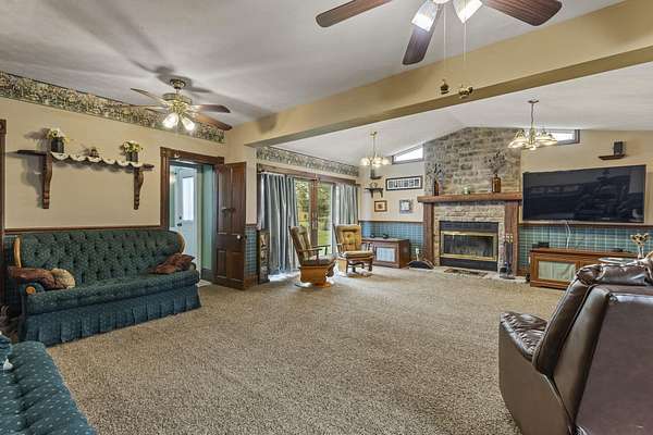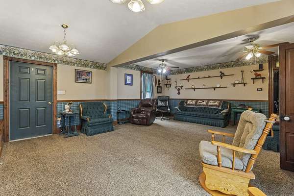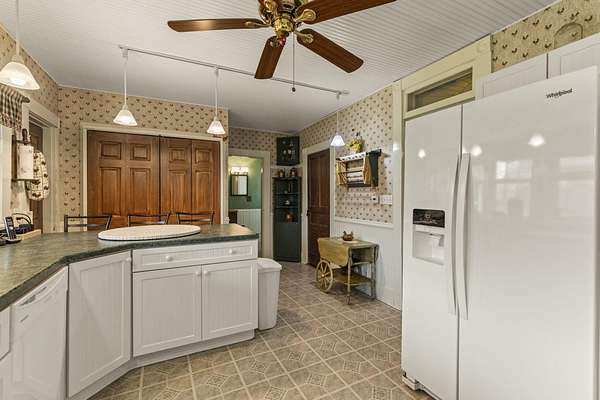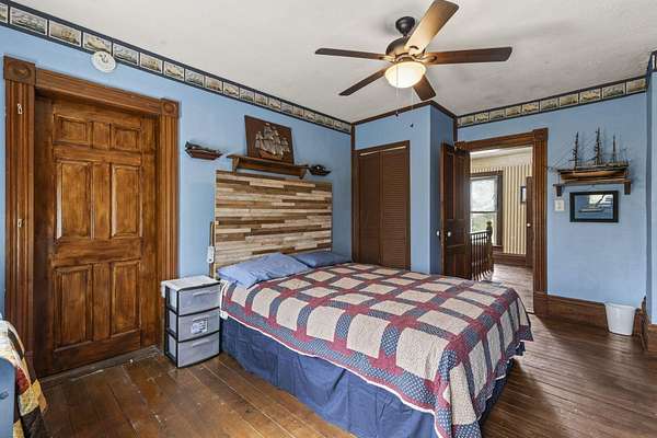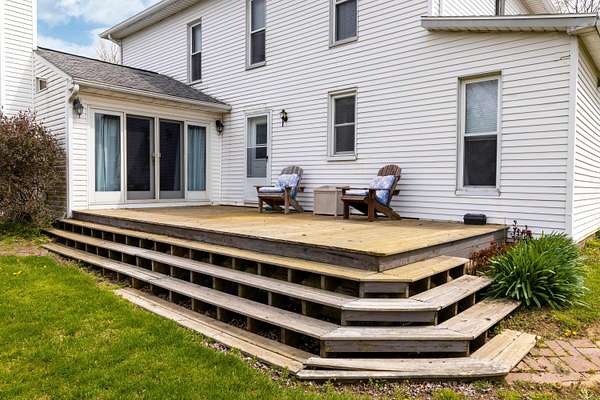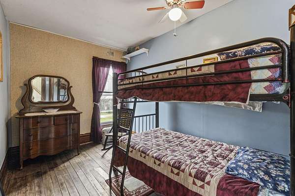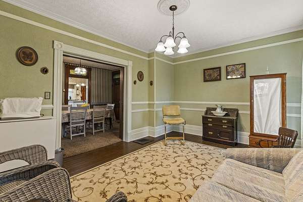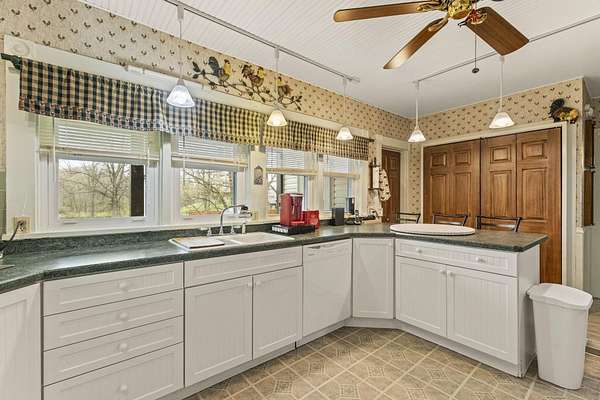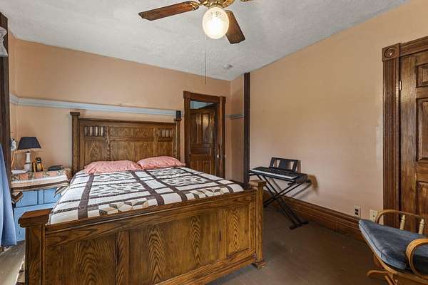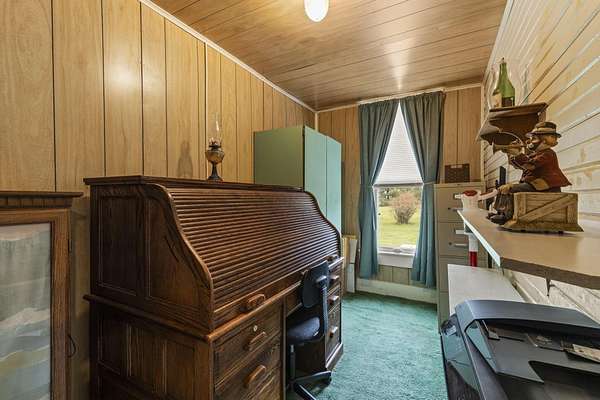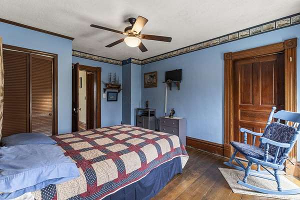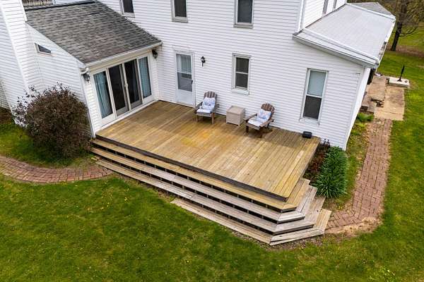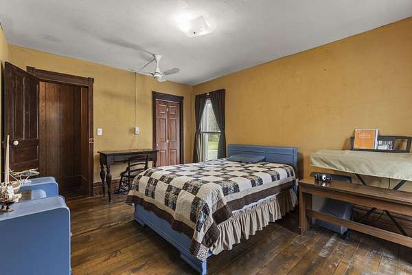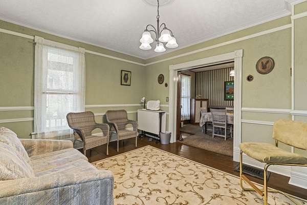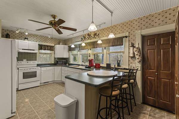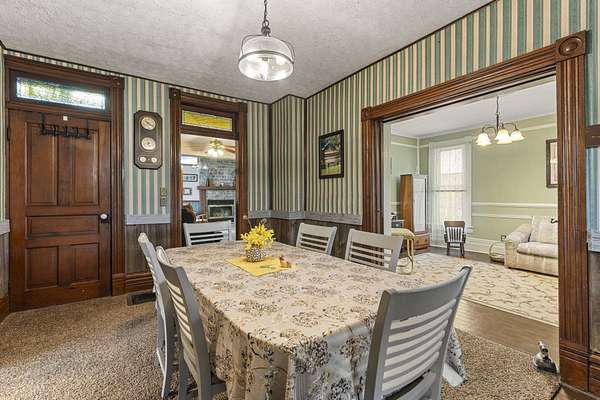Imagine sipping your morning coffee while watching the sunrise from the comfort of your front covered porch. This beautiful two-story home offers the perfect setting for starting your day with tranquility and peace. This 2,666 sq. ft. home boasts four bedrooms and two full baths, making it ideal for those who love to entertain. The charming woodwork throughout the home adds a touch of elegance and warmth to each room. Additionally, the convenience of first-floor laundry enhances the practicality of this lovely residence. Situated on 4.93 acres of land, the property is adorned with mature trees, offering plenty of privacy and a serene environment. High Speed internet available. Generator stays with house. 40ft L X 16ft W concrete pad in barn for RV Parking. Separate entrance from outside to basement. Furnace was replaced in approx 2017. Whether you enjoy gardening, outdoor activities, or simply relaxing in nature, the expansive grounds provide endless possibilities.