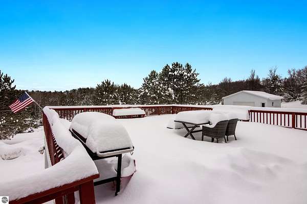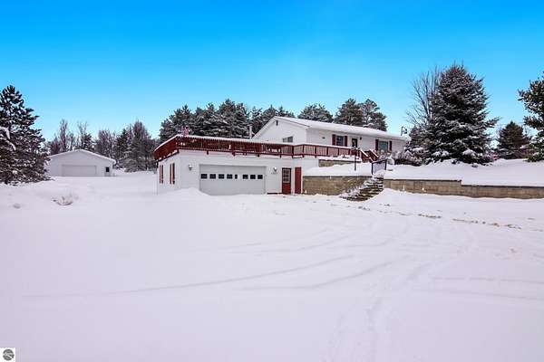 Need space? Room to Grow? This beautiful 3.52 acers is absolutely beautiful and all useable land. 32X32 Pole barn with concrete floor was built in 2016 and great for all the toys! House acreage features a sprinkler system, gorgeous trees, irrigated fenced garden area with greenhouse! Over sized 2 car garage with amazing deck above for three season cookouts/entertaining or just to enjoy the views. Western lot has well/septic if you want to add any additional buildings (per township). Inside you'll find 3BR's 1BA on main and partially finished 1/2 bath on lower level. Unfinished basement has room to grow! Updated Kitchen features quartz countertops and hardwood floors. 3 nice size bedrooms (two with paneling have drywall behind). Practically walk to the village of Buckley and only 20 minutes to TC! Don't miss this great opportunity. Priced to sell!