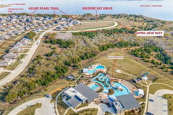From US 75 in Plano, E on Parker Rd about 9 mi, to Inspiration entrance on L at helix sculpture, ponds. Follow Inspiration Blvd to roundabout just past Club Inspiration, take first street R, follow Meziere Sky Dr, second vacant lot on R past completed home at Meziere Sky-Azure Pearl intersection.