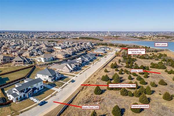 Unrivaled opportunity! Prime oversized lot for custom build. Lakeside lifestyle in scenic enclave surrounded by wide greenbelt adjacent to recreation jewel Lake Lavon! Exceptional location, amenities! Build your dream home, enjoy Lake Lavon lakeside living less than 9 mi from Hwy 75! In secluded lakeside custom Inspiration Point Village near fast-selling new homes in stunning 600-acre award-winning Master Planned INSPIRATION. Highly rated Wylie ISD, on-site elem. Amenities galore incl ponds, parks, trails; world class Club Inspiration with 4 pools, lazy river, 2 story fitness ctr, in & outdoor entertaining. I invite you to call HOA to schedule a quick Club Inspiration tour! Nearby 25-mi Trinity Trail & marina, beaches, parks. Tranquility of small-town living with convenient access to shopping, dining, employment, medical facilities and entertainment venues in the DFW Metroplex. INSPIRED Texas living! TRUE CUSTOM BUILD OPPORTUNITY! Exclusive, generous site for YOUR custom-designed home by YOUR chosen builder. Any true architectural style welcome. Any legitimate builder welcome, subject to approval. 3500SF min cond space and other high-quality architectural elements required, 35 ft max height. Exclusive custom-home section offers much more flexibility in architectural style than elsewhere in Inspiration. Architectural Guidelines, CCRs, fact sheet, construction-related documents, sample contract provided upon request. Execute lot purchase contract, 60-day option, you and your architect or builder draw plans within 150 days, obtain architectural approval from seller, then close on lot, pour slab within 12 months after lot closing, then you have another 18 months after pouring slab to complete construction. There is no preferred lender or builder list but resources can be provided. Buyer must show POF or CONSTRUCTION LOAN pre-app to support price of lot PLUS ESTIMATED CONSTRUCTION COST. Typically $750K+ for house, plus lot = $1mil+.
