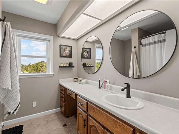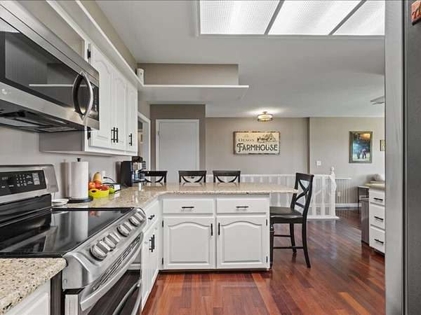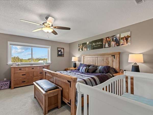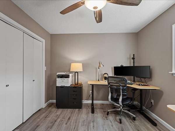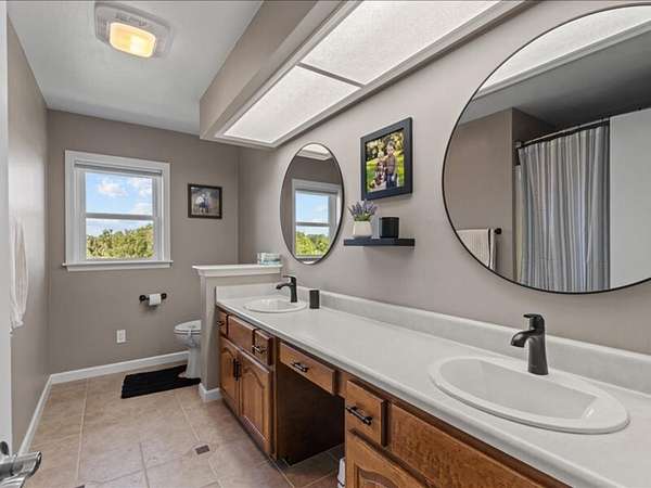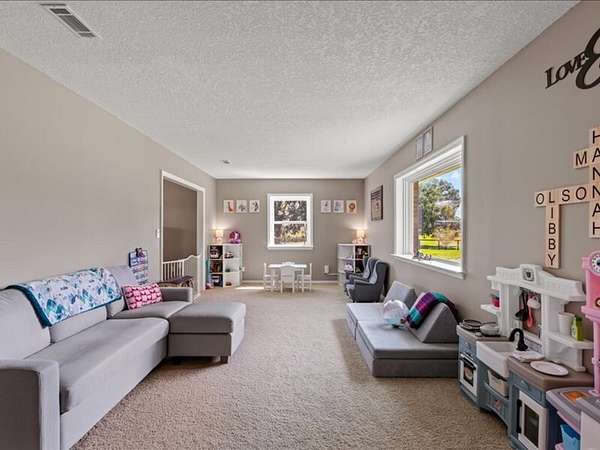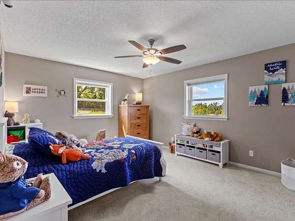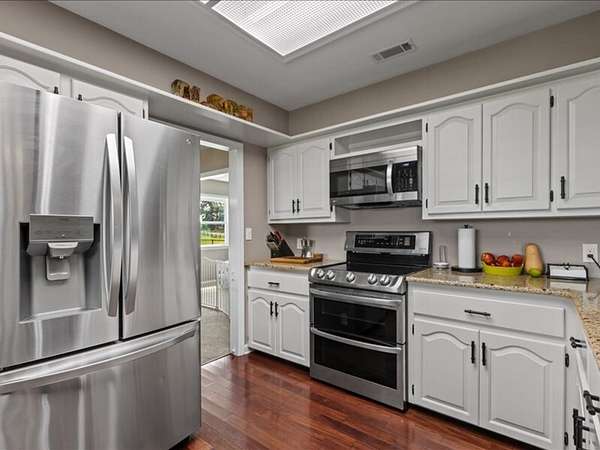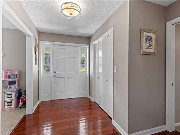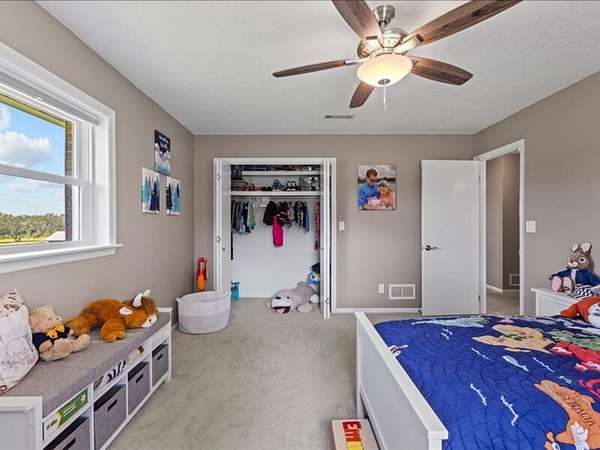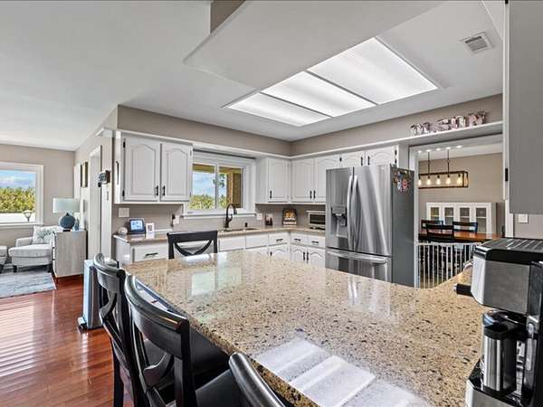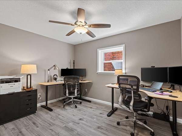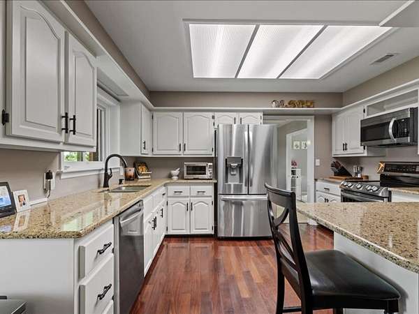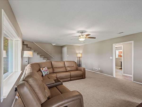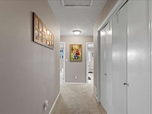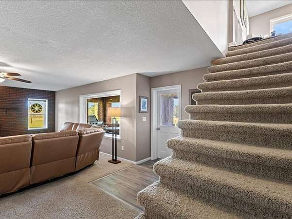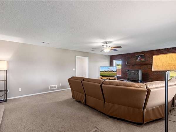The 2,700+ sq. ft. brick home (with a new roof installed in 2023) offers 4 spacious bedrooms and 3 full bathrooms. Thoughtfully designed, the layout includes three bedrooms upstairs, along with a private downstairs suite that could serve as a fourth bedroom or a secluded office. Inside, every detail has been refreshed: the entire interior was freshly painted, new carpet was added to bedrooms (2023), and gleaming wood floors flow throughout the remaining spaces. Oversized picture windows installed in 2024 fill the home with natural light, while geothermal dual units and a new upstairs AC ensure comfort and efficiency. Additional highlights include 2x8 construction walls, lightning protection, generator hardwiring, abundant storage with custom built-ins, and new gutters. Outdoors, enjoy a covered patio and cook area, plus a shaded side yard with an installed awning.