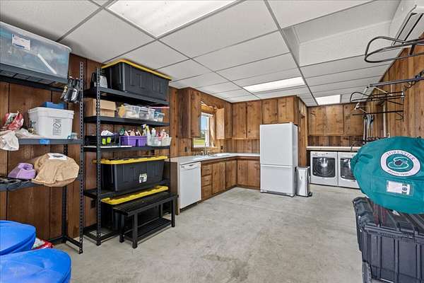 Main Barn (updated 2025): New roof, siding, and windows with 2x6 construction. Includes a kitchen, laundry, full bathroom, and large garage area. Upstairs, a spacious open loft with mini-split heating/cooling offers endless potential.