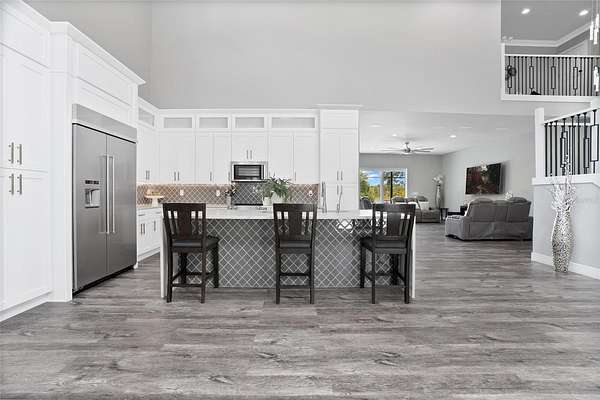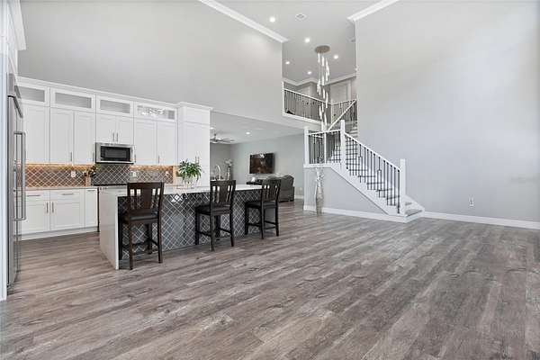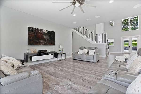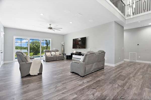 The outdoor space harmoniously blends relaxation and recreation, featuring a capacious screened patio deck, a glistening pool, a covered outdoor living room, and captivating views of the tropical lake surroundings. Don't let this unparalleled opportunity slip away - secure your chance to experience this remarkable estate firsthand by scheduling a private tour today. Your dream of lakeside luxury living awaits.
