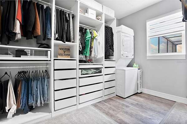 - High Ceilings, Living Room/Dining Room Combo, Primary Bedroom Upstairs, Stone Counters, Walk-In Closet(s), Window Treatments