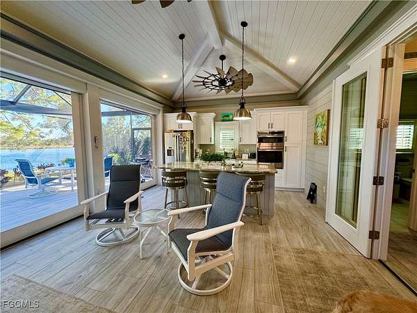 Experience refined resort living on this exceptional waterfront luxury motorcoach lot, perfectly positioned to capture serene lake views. The beautifully designed coach cabana is thoughtfully appointed for both comfort and entertaining, featuring high-end finishes, a cozy fireplace, and inviting living spaces that feel like home from the moment you arrive. The cabana includes a well-equipped kitchen, spa-style bathroom with double sinks, and generous storage, along with a private garage ideal for your golf cart, toys, or additional storage needs. Designed with both elegance and functionality in mind, every detail reflects quality craftsmanship and effortless living. Step outside to enjoy peaceful waterfront views, a stunning sunrise, and the tranquil ambiance that makes this property a true retreat. Located within a Golden Palms Luxury Motorcoach Resort, this lot offers the perfect blend of privacy, beauty, and resort-style amenities-ideal for seasonal stays or extended enjoyment. There are plenty of activities for everyone and every interest including pickleball, cornhole, fishing pier, kayaks, paddleboats, darts, poker, board games, books, puzzles, dog park, and outdoor wood burning firepit. The Resort is only a short drive away from restaurants, shopping, parks, golf, airport, Baseball Spring Training Stadiums, and SWFL Beaches. Golden Palms Luxury Motorcoach Resort is a Fabulous place for your Class A or Super C Motorcoach and even your stacker trailer if painted to match your motorcoach. Schedule your tour today! Professional photos coming soon.
