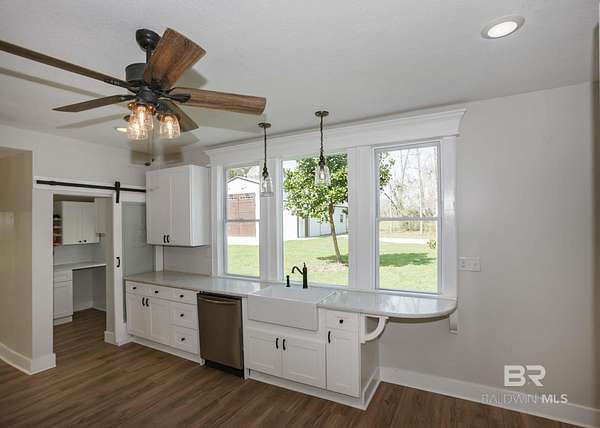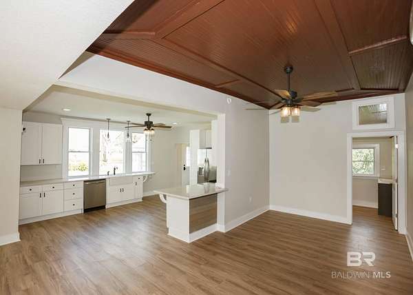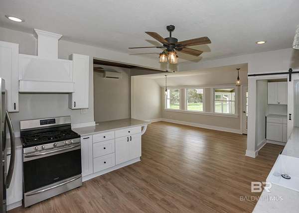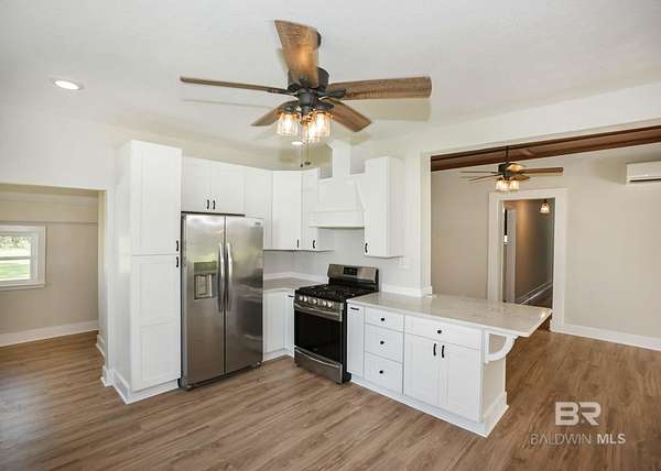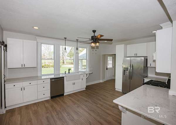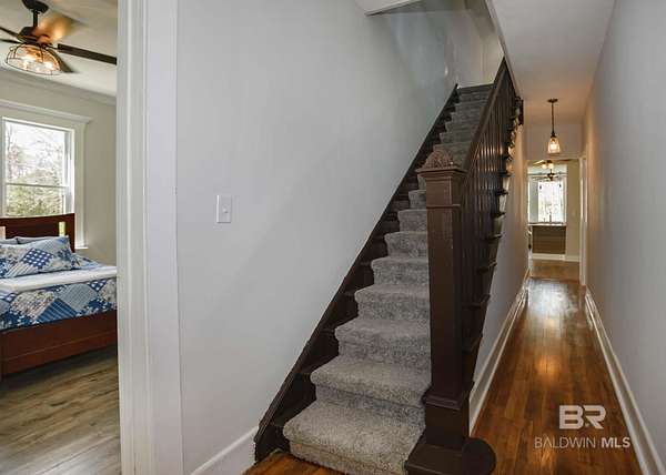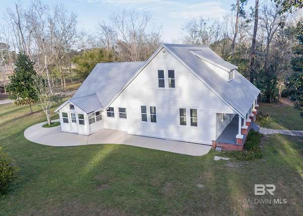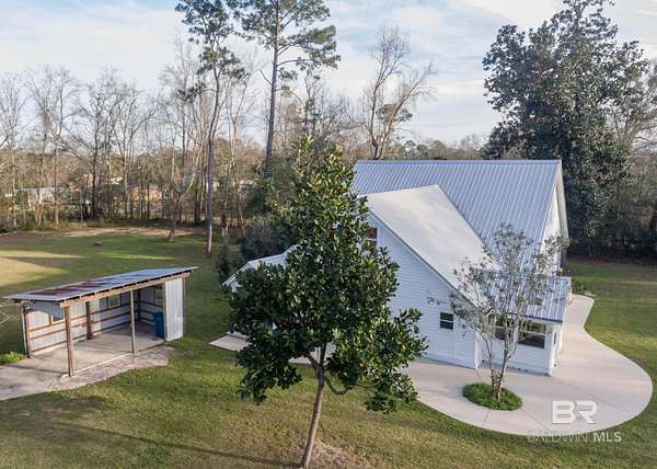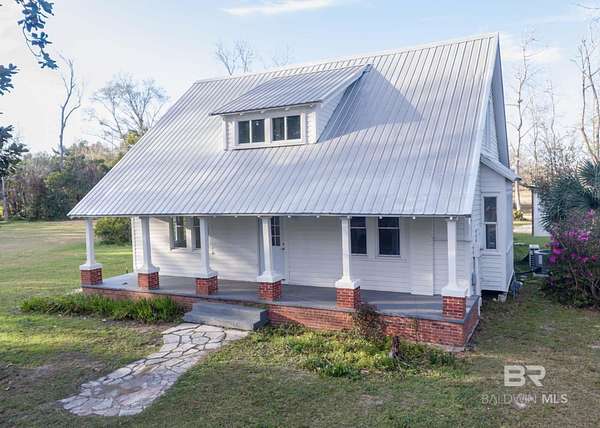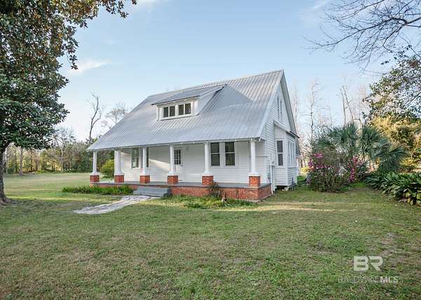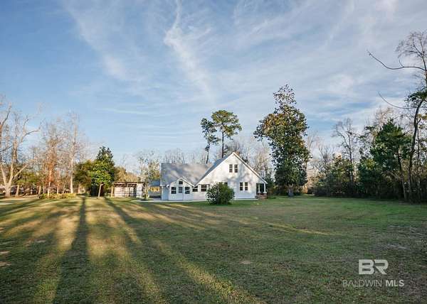 Historical / One of a Kind / "Hurricanes" Survivor / This 2500+ sq ft Elberta Farmhouse is on 2+ acres, one block from Elberta High School. Please take the Virtual Tour to see every detail of this home... The Granite Countertops and freshly refinished oak floor in the Living Room are a couple of the highlights of the renovation. Also, all of the windows have been replaced. The central AC/Heat for the upstairs is complimented by 4 Mini-Splits downstairs. The main attraction for the Man of the House is actually the Man Cave / Barn in the backyard! The 45' by 48' metal building was built in 2023. The electrical circuits are there to handle an RV or welder. Buyer to verify all information during due diligence.