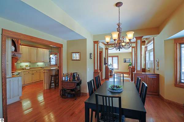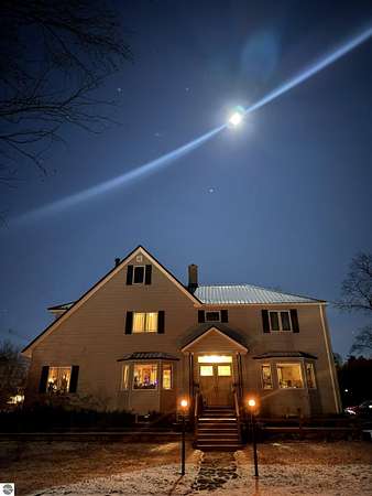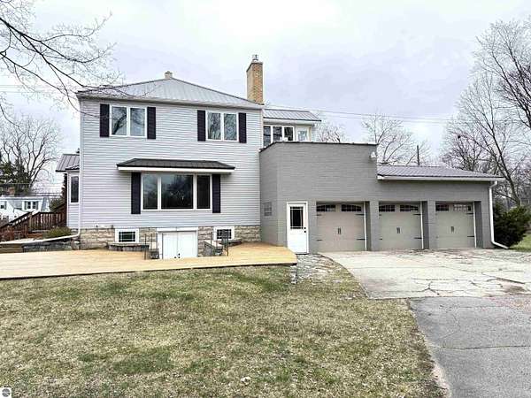 This recognizable home with its gated driveway entry sits on 2+ acres between Brown and Russell, close to Pullen Elementary, McLaren hospital, and downtown. It’s a little piece of the country in the city. This property is like your very own park, with mix of mature and new trees, wooded trails, several gardens, large open yard and deck. Combined with the walkout finished basement and full bath, it makes this home perfect for yard games and entertaining. The 3-car attached garage provides plenty space including a workshop and garage attic storage. House has 6-inch gutters with leaf guards. Not to mention the large pole barn with drive through garage doors, ready to house your lawn equipment, camper, or boat. Inside, the home has been beautifully renovated and restored over the years, to maintain the quality craftsmanship of the grand staircase, solid wood doors, and wood accents. It is a timeless home with hardwood floors and custom case windows throughout. The open main living-dining-kitchen space features custom cabinetry, quartz countertops and island, side entry built-ins, and updated gas fireplace. The second floor offers loft space, laundry, full bath, front alcove, large closet and storage spaces, and 2 bedrooms including large primary bedroom with fireplace and attached sunroom ready for you to finish. The third-floor bedroom, equipped with its own thermostat, can easily double as a gaming room, craft room, or office. The homes systems — furnace, AC, roof, siding, fence — have all been updated in the last 10 years. This truly unique one-of-a-kind home offers a glimpse in history mixed with the updated conveniences of today.