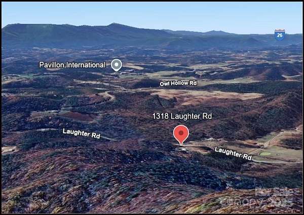 From Lake Lure Ingles, go down Girls Scout Camp Rd and stay on it. It turns into Laughter Rd and the Driveway will be on the left. There is a house with a pond in the front yard across the road. From Columbus, Take 108E to Left on Hwy 9 North. Left on Laughter Rd. Go through the crossroads of Laughter and Owl Hollow. The driveway will be ahead on the Right.