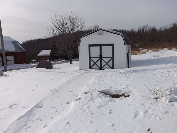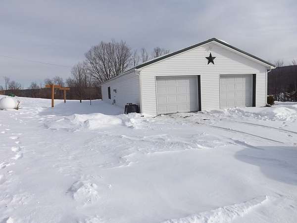 Est $1,974/moEnough with the "white stuff" already! It's time to go GREEN! This highly energy efficient ranch home is a Blue Maxx structure, and is a dream come true for anyone who wants single-level living. Features an open floor plan with three bedrooms and two full baths, wide doorways, quality floor coverings, laundry and utilities all on the first floor, enclosed porch, as well as an attached two-car garage with attic access. No basement, so no steps to contend with. Storage building for outdoor equipment. Large yard with a view. A truly low maintenance property on 4 1/2 acres. OGM rights are negotiable.