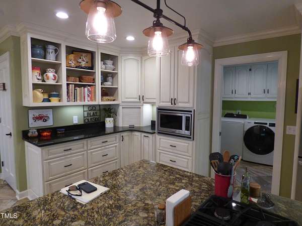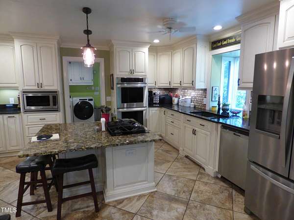 - Built-In Gas Oven, Built-In Range, Dishwasher, Double Oven, Exhaust Fan, Gas Water Heater, Ice Maker, Microwave, Plumbed For Ice Maker, Refrigerator, Stainless Steel Appliance(s), Wine Refrigerator