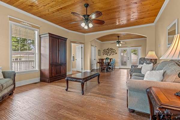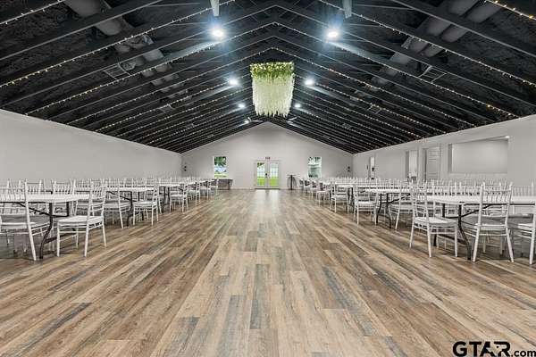 What an opportunity; this is an absolutely beautiful property situated on 4.19 acres just outside Tyler city limits in Chapel Hill. It is currently being used as an event venue that is aprox. 2200 sq ft and comes heat/cooled for year round comfortability. There is a kitchen in the venue and restrooms so it is well equipped to host large weddings, birthdays, family reunions and anniversary celebrations. For more intimate gatherings, there is a 30 x 60 pavilion and 40 x 60 white chapel. The 1890 sq ft 3 bed, 2 bath home on the property is a restored 1900's farmhouse full of character, charm and modern comforts with beautiful wood floors and granite countertops. It could be the perfect spot over a wedding weekend for the bridal party to get ready or enjoy brunch the afternoon before. There are multiple pretty stone walkways leading to the different areas, benches and swings to tie all of this property together and the possibilities of what could be hosted here are endless. Facilitate more memory making in East Texas by taking advantage of this property and all it has to offer. Schedule your showing today!