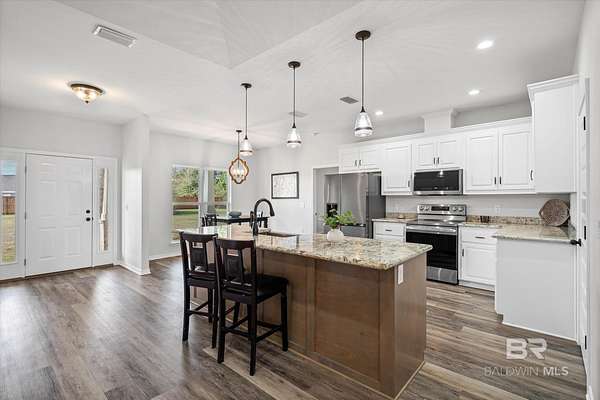 The Grove of Elberta is a newly developed community that offers acreage with custom homes. 13198 Gopher Court could be yours! Situated on 1.5 acres and with only a couple of neighbors in this wide cul-de-sac. Close to shopping, schools, and all the great things that South Baldwin County has to offer. This 5 bedroom, 3 bath brick and Hardie board home is beautiful both inside and out. There is plenty of room on the property to add further amenities for your enjoyment. Inside, the kitchen will be the central gathering spot with a large island and striking granite. The large living room contains a brick wood-burning fireplace. The primary suite creates a private retreat complete with separate tub and shower with 2 closets. There is another awesome bedroom with ensuite bath for many living arrangements. Lots of room to roam on this 1.52 acre partially fenced lot next to wooded area. Come check it out today with your favorite realtor. Easy to show! Buyer to verify all information during due diligence.