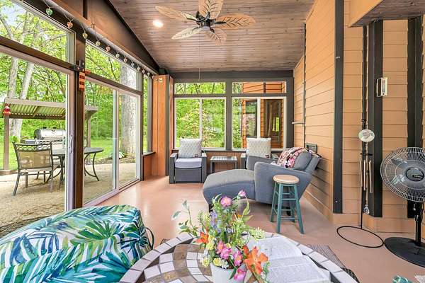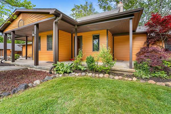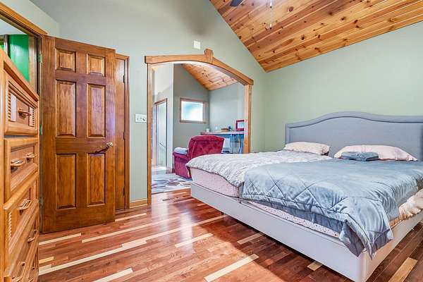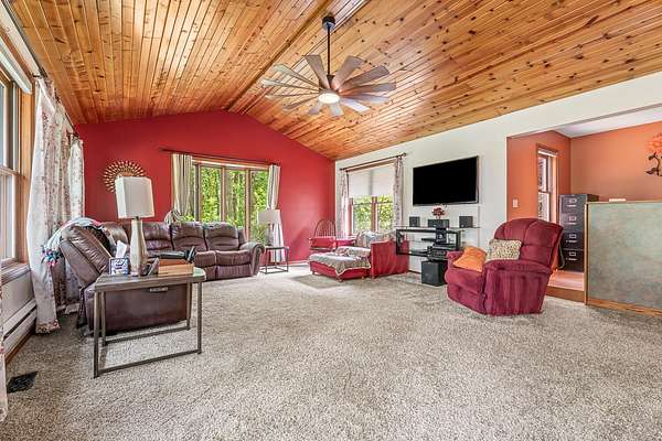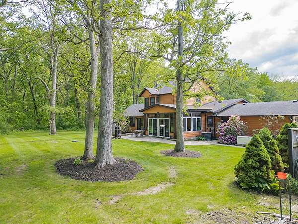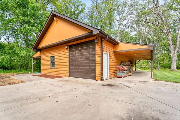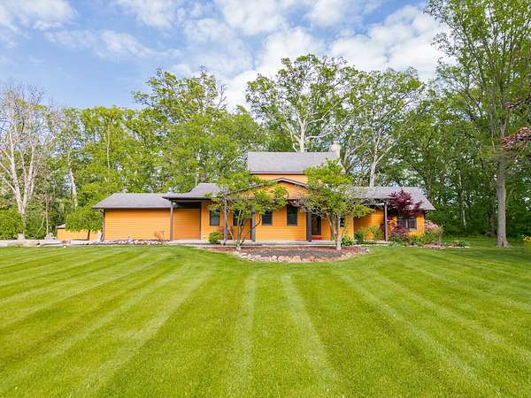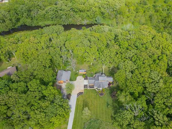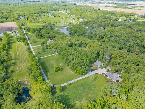 Quiet seclusion at it's best. Let your senses unwind, in this park-like setting, at the end of a private road. Formal dining area with custom hardwood floors and trim with a two- sided all masonry fireplace, which is shared by the living room and dining room, can be seen from the kitchen as well. The sunken living room has ample window space for natural lighting. There is an adjoining office space just off the living room. The upstairs master suite, with fireplace and custom hardwood floors and accents, is accompanied by an on suite master bath with a heated ceramic tile floor and a walk in closet. Main floor laundry. Large three seasons room with lots of room for relaxing and enjoying the wonders of the woodlands, wildlife and open space. Basement is 3/4 finished with wet bar, fireplace and ceramic 3/4 bath with shower. Attached 2 car garage, plus an exterior matching 30 by 40 heated garage/hobby shop complete with covered awnings on three sides. Exterior wood burning heat system in addition to the natural gas forced air heat. Whole house Generac natural gas generator for back up electrical supply. Close enough to shopping and parks to be convenient for those short hops into town amenities. Beautiful setting on 4.893 secluded acres. Must see to appreciate, schedule your visit today.