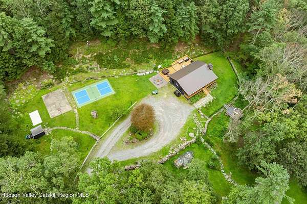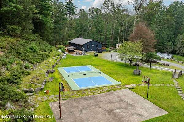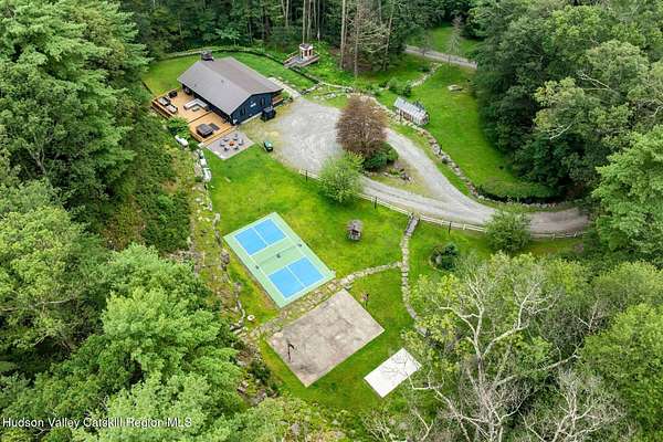 A Mountaintop Sanctuary of Modern Luxury and Rustic Charm A rare offering: a private 55-acre mountaintop estate with commanding, unobstructed mountain vistas and a lifestyle that blends serenity, sophistication, and adventure. This extraordinary compound features three exquisite homes, a garage barn and shed, plus a 24-acre buildable lot-a truly unique opportunity to own your own summit. The main cabin welcomes you with warmth and style, offering 3 bedrooms, 2 baths, and a flowing open floor plan. Thoughtful details include a screened porch, expansive deck, fire pit, and courts for basketball and pickleball-ideal for entertaining or quiet enjoyment. The lower level provides a cozy family and game room. Fully furnished and move-in ready, it even includes a golf cart, generator, and EV charger. Nearby, the newly built modern metal-sided home impresses with striking architecture and panoramic mountain and pond views. Inside, discover an open-concept living space, chef's kitchen with quartz countertops, high-end appliances, and custom cabinetry. Completing the compound is a designer tiny home, a jewel box of style featuring a sleeping loft, woodstove, and curated furnishings-perfect as a guest retreat or creative studio. Every element of this property was crafted to embrace nature, comfort, and elevated design. Whether as a private family compound, luxury getaway, or investment, this mountaintop estate is a truly singular retreat above the world. A 3D Walkthrough Tour is available in the digital Lookbook or by request.