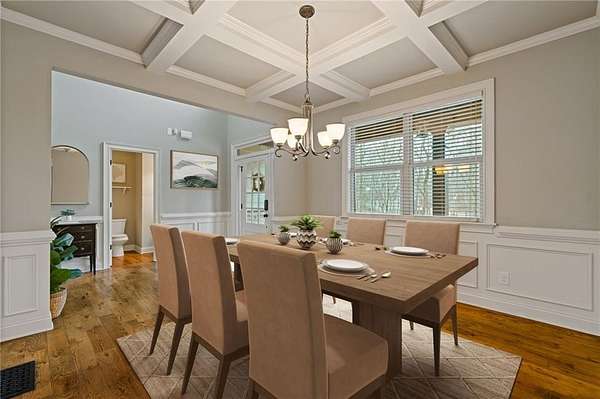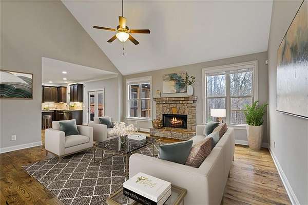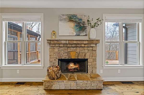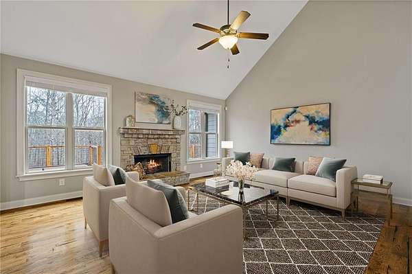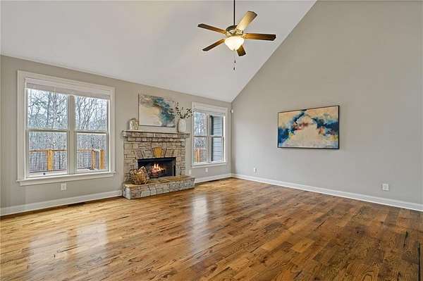 Situated on 2.05 acres at the end of a CUL-DE-SAC, this 4 bedroom, 2.5 bath home offers a rare blend of privacy, space, and convenience just minutes from Highway 20, I-75, and Lake Allatoona. The main level features HARDWOOD FLOORS throughout, HIGH CEILINGS, and a two story foyer that creates an open, welcoming feel. A stacked stone fireplace anchors the living room, while the kitchen is finished with GRANITE COUNTERTOPS and designed to connect seamlessly with the main living areas, ideal for both everyday living and entertaining. A FORMAL DINING ROOM provides a dedicated space for hosting. The primary suite is located on the MAIN LEVEL and includes a WALK-IN CLOSET and stunning ensuite bath. Upstairs offers three secondary bedrooms, a full bath, and a flexible BONUS SPACE well suited for a home office or additional sitting area. Outdoor spaces include a rocking chair front porch, screened porch with FIREPLACE, expansive deck, HOT TUB, and a fully FENCED backyard. The UNFINISHED BASEMENT offers excellent potential for future customization, and the extended driveway provides ample parking. Neighborhood highlights include large lots and LOW HOA fees.