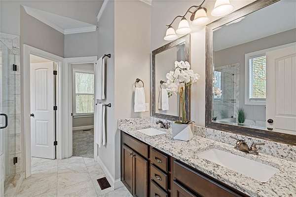 - Double Vanity, Entrance Foyer 2 Story, High Ceilings 9 ft Main, Tray Ceiling(s), Walk-In Closet(s)