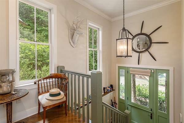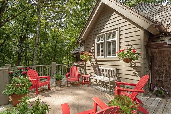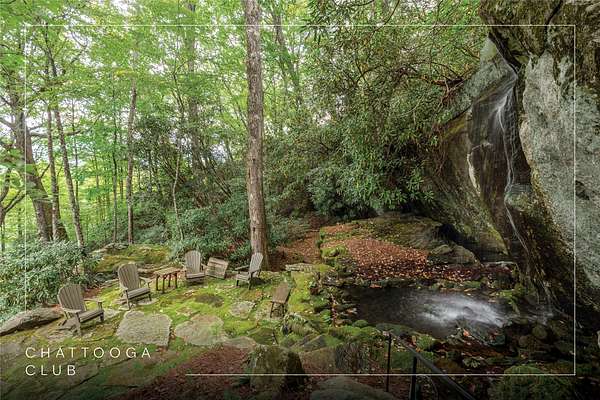 Enjoy peace and privacy on 1.87 acres of secluded forest in the gated Chattooga Club neighborhood. This property boasts a stunning stone entryway and immaculately manicured paths that lead to the most comfortable living on the Plateau. The great room offers a space to relax with a stacked stone fireplace and long-range views of Chimney Top and Rock Mountains, while the expansive screened-in deck is an ideal spot to enjoy the sights and sounds of nature with family and friends. The spacious kitchen features an island that's perfect for entertaining with top-of-the-line appliances and modern cabinetry. On the main level, the luxurious primary suite features a fireplace, an attached sunroom, and a generous ensuite bathroom with a walk-in shower, a walk-in closet, and its own laundry space. Upstairs, there are two guest bedrooms with ensuite bathrooms, a cozy sitting room, and a bonus room. The lower level features a bedroom with an ensuite bathroom and an additional living space with a wet bar that connects to the wine cellar. There is also a detached guesthouse over the garage with a cozy sitting room, a kitchenette, and a private bedroom with bathroom, providing privacy for family members or guests and connecting to the main house via a short covered walkway. Along with its breathtaking views, the property comes with a vacant lot that backs up to the house, a waterfall, picturesque grounds, a screened-in standalone pavilion with a fireplace, a grill, and ample space to relax and enjoy the sounds of the running water. Located just two miles - a 5-8-minute drive - from the crossroads and all the shopping and dining amenities, this exquisite home offers everything that's needed to enjoy a refined mountain lifestyle.