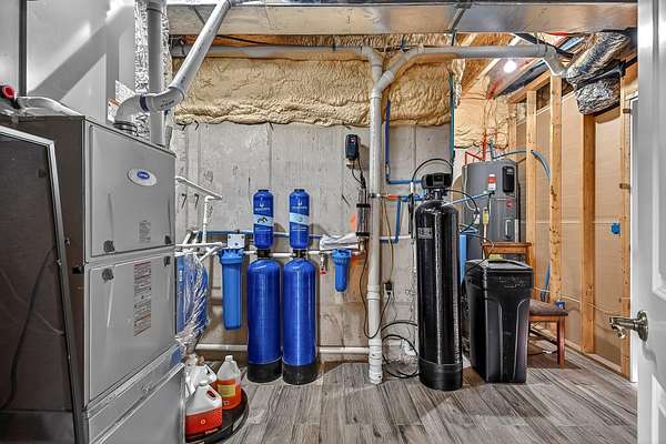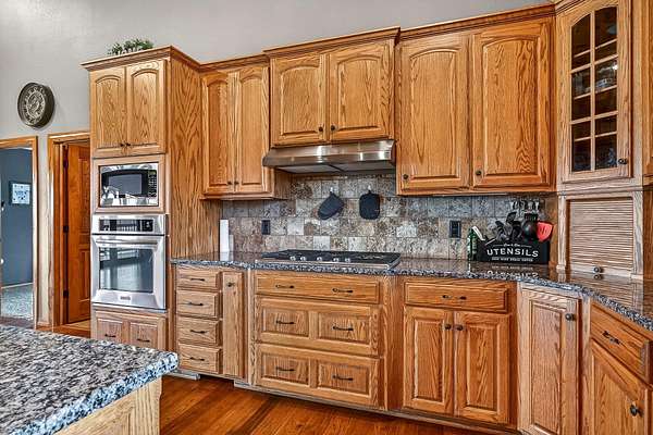 - Built-In Electric Oven, Dishwasher, Exhaust Fan, Microwave, Propane Cooktop, Propane Water Heater, Water Softener Owned