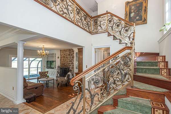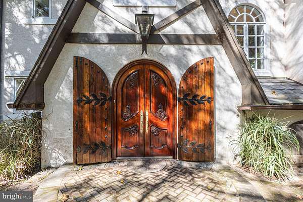 If privacy and tranquility are what you seek, this gated 32-acre Bucks County estate is your perfect retreat. Down and long, winding drive into the hollow, nestled along the scenic Tinicum Creek, the Tudor-style residence combines timeless architecture with refined finishes. A grand entry sets the stage for interiors that showcase stone fireplaces, pegged oak floors, and a custom-crafted staircase crowned with a bronze railing. Sunlight pours through French doors and windows, framing stunning views of the surrounding natural landscape. Enjoy a sunroom perched above the cliffs, along with four bedrooms and four marble-clad baths, all appointed with Sherle Wagner fixtures. The property's serene setting offers unmatched seclusion yet keeps you minutes from Doylestown, New Hope, Lambertville, Frenchtown, the Delaware River, and towpath trails.