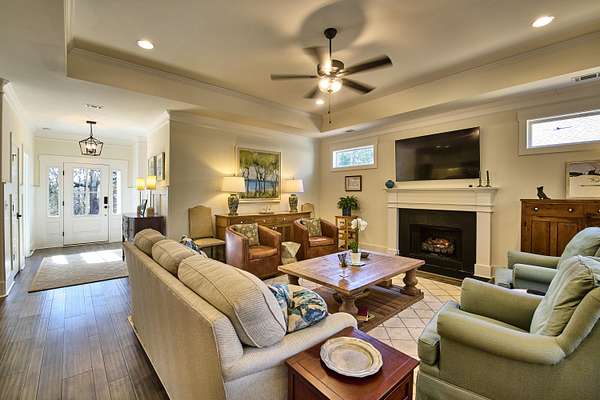 TAKE A LOOK AT THIS EXCEPTIONAL HOME - The Flowering Peach, one of Capital Builders most popular floor plans loaded with quality upgrades: Rich Hardwood Floors enhance the main living areas, Volume Ceilings throughout, PLANTATION SHUTTERS, Gourmet Kitchen with Gleaming Quartz Counters including on the 4'x7' Central Island, Premium Stainless Appliances, White Tile Backsplash, Ambient Under-counter Lighting, and TWO pantries! Kitchen opens seamlessly into spacious great room centered by a CLASSIC SLATE FIREPLACE w/custom mantel. Convenient mud room perfectly located as you step in from the garage with packages and jackets. And who wouldn't love a 17' x 21' BONUS ROOM which offers a myriad of possibilities!! The 19'x12' nature focused Screened Lanai is perfect for your quiet morning coffee or afternoon wine time after a full day of golf or fishing. Additional upgrades: Gutter guards, upgraded insulation package providing relief from high electrical costs, inside laundry room with extra storage and premium washer and dryer that remain with the home. Perfect location just a short golf cart ride to all the amenities Savannah Lakes has to offer: Tara Golf club and River Grille, tennis, pickleball, fitness rooms & classes, indoor & outdoor pools, bowling, cafe, social activities, and a wonderful lake for all your water sports. NOTE: IF YOU ARE SEARCHING ON ZILLOW, THE HOA DUES ZILLOW SHOWS IS COMPLETELY WRONG - THE POA DUES IN SAVANNAH LAKES VILLAGE ARE 180/MONTH.